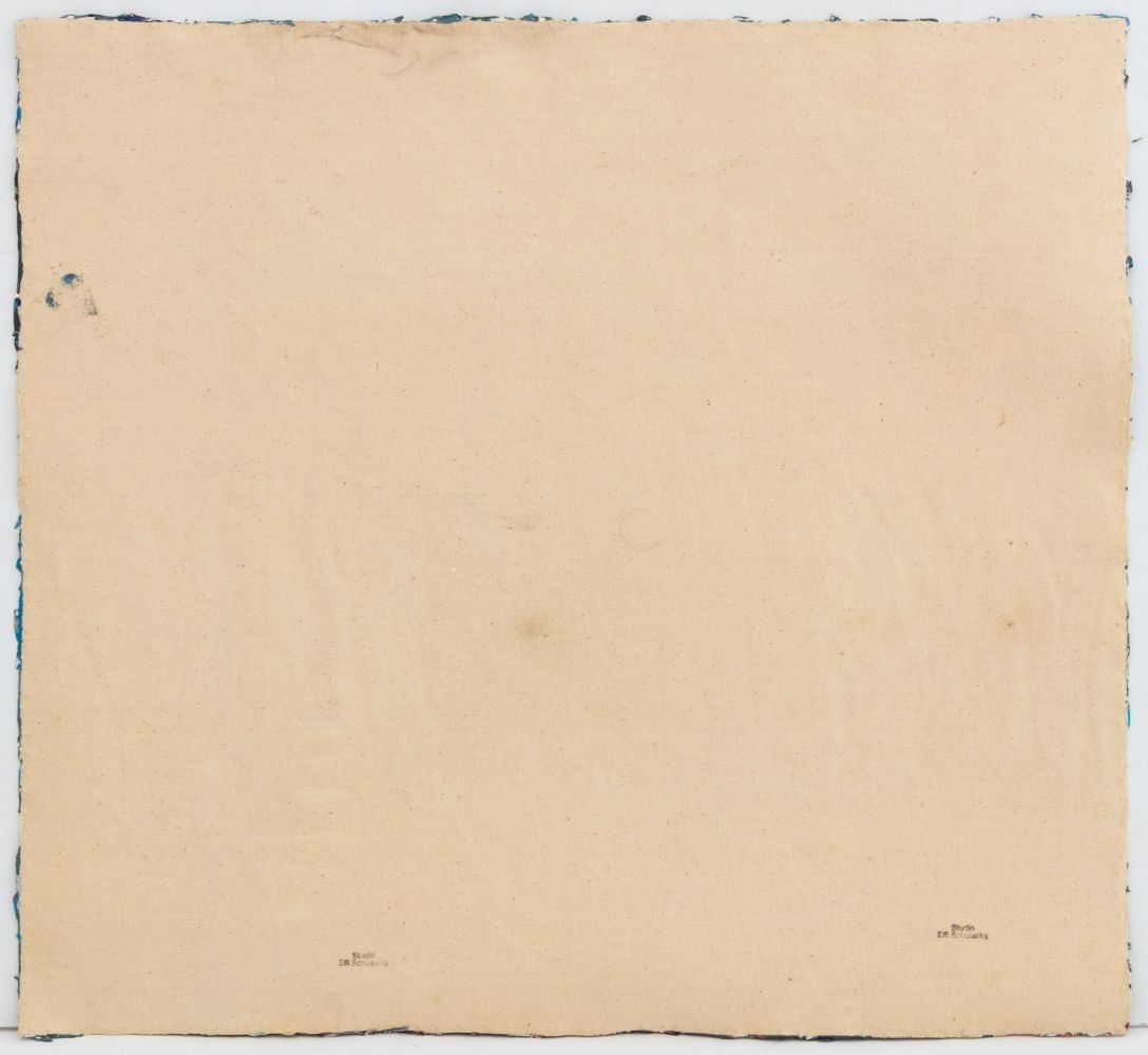 Elfi Schuselka (Austrian, b. 1940), Abstract Composition, Oil on Canvas, apparently unsigned, stamped "Studio Elfi Schuselka" to verso, unstreched, unframed. 21.25" H x 23.25" W. Provenance: From the collection of the artist. Note: Schuselka studied photography, art history, and theater at the University of Vienna. She moved to New York in 1964. Her work has been exhibited internationally in the United States, Italy, France, and Japan, as well as at the Cracovia Biennial, Yugoslavia, Ibiza Biennial, Spain, and the Sao Paulo Biennial. Her work is part of the permanent collections of the Museum of Modern Art (MoMA), New York, the Amon Carter Museum of American Art, Fort Worth, and the International Centre of Graphic Arts, Slovenia. Long a regular exhibitor at the famed 55 Mercer Gallery, Schuselka is well-known in New York art circles together with her husband, Domenick Capobianco (American, b. 1928). Keywords: Painting, Oil Paintings, Works on Canvas, Impasto, Texture, Brushstroke, Collage, Automatic drawing, Automatic writing, Cy twombly style, Miro style, Triangles, Abstraction, Abstract, Rainbow, Polychrome, Geometric, Patterns, Abstract Expressionist, Expressionism, AbEx, Women Artists, Contemporary Art