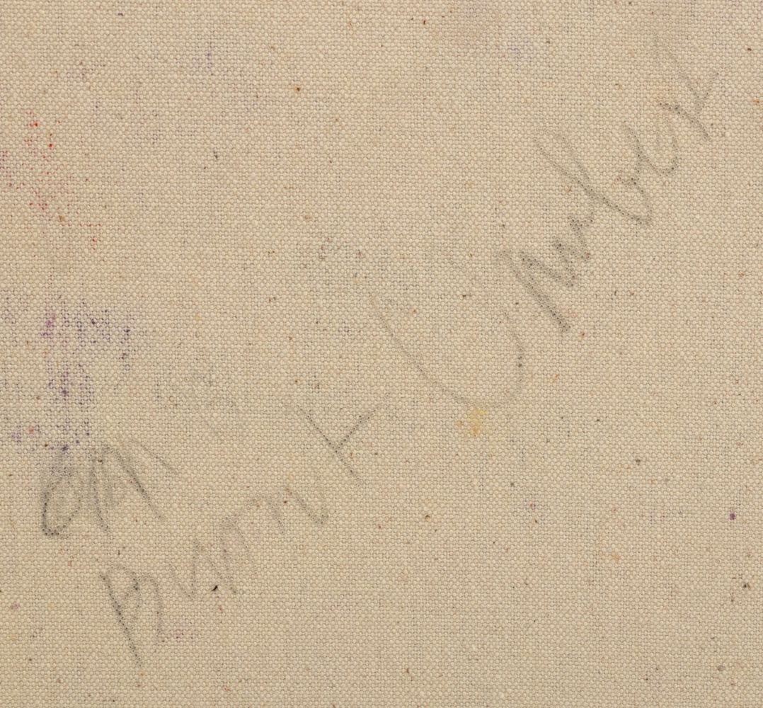 Elfi Schuselka (Austrian, b. 1940), Abstract Composition, Oil on Canvas, apparently unsigned, marked "Burnt Umber" and stamped "Studio Elfi Schuselka" to verso, unstretched, unframed. 21.5" H x 23.5" W. Provenance: From the collection of the artist. Note: Schuselka studied photography, art history, and theater at the University of Vienna. She moved to New York in 1964. Her work has been exhibited internationally in the United States, Italy, France, and Japan, as well as at the Cracovia Biennial, Yugoslavia, Ibiza Biennial, Spain, and the Sao Paulo Biennial. Her work is part of the permanent collections of the Museum of Modern Art (MoMA), New York, the Amon Carter Museum of American Art, Fort Worth, and the International Centre of Graphic Arts, Slovenia. Long a regular exhibitor at the famed 55 Mercer Gallery, Schuselka is well-known in New York art circles together with her husband, Domenick Capobianco (American, b. 1928). Keywords: Paintings, Works on Canvas, Impasto, Texture, Abstraction, Polychrome, Turquoise, Red, Geometric, Patterns, Spiral, Abstract Expressionist, Abstract Expressionism, AbEx, Women Artists, Contemporary Art