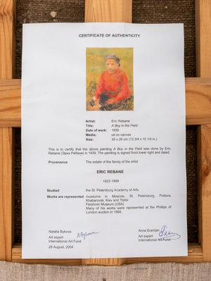 Eric Rebane "Boy in the Field" Oil on Canvas, 1939