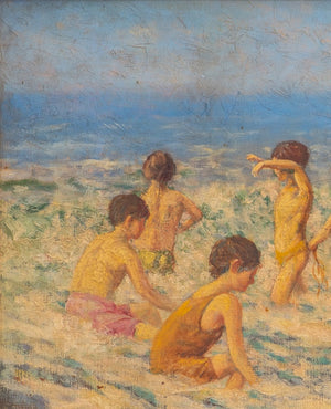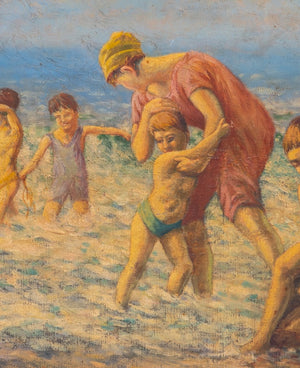 Frederick Massey, Beach Scene, Oil On Canvas