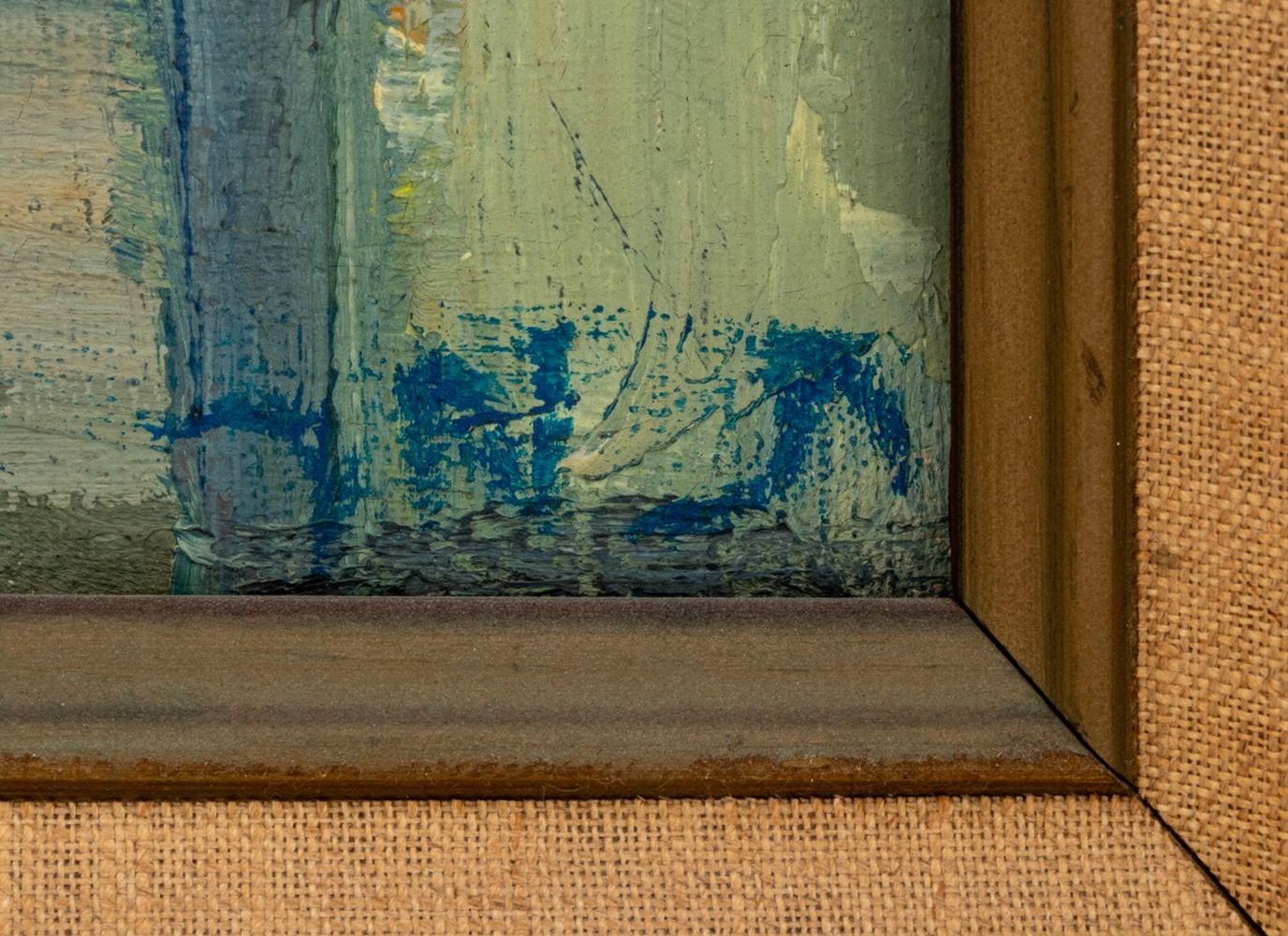 American School Still Life with Chrysanthemums, Oil on Canvas, illegibly signed to lower right, wood frame. Image: 23.75" H x 17.5" W; frame: 28.25" H x 22.25" W. Provenance: From a New York City Collection. Keywords: Painting, Oil on Canvas Works on Canvas, Flowers, Floral, Tableau, Nature, Genre, Botanical, 20th Century Art