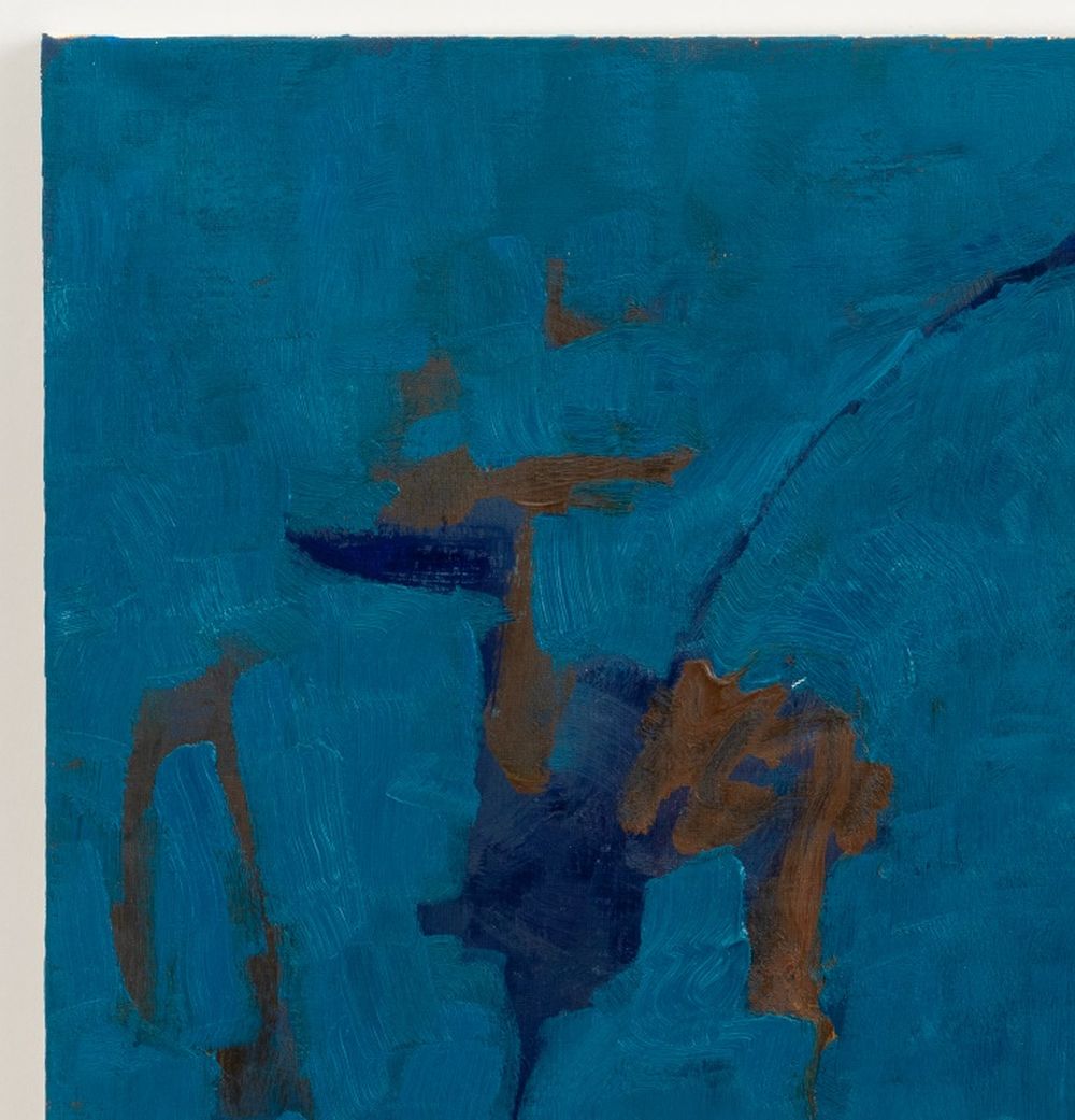 Robert O'Meara (American, 1957-2024), Abstract Composition in Blue, Oil on Canvas, with central oval form, signed to verso, unframed. 27" H x 22" W. Provenance: From a 333 East 75th Street Estate. Keywords: Painting, Works on Canvas, Oil painting, Abstraction, Expressionism, Abstract Expressionist, Abstract Expressionism, Polychrome, Red, Geometric, Contemporary Art