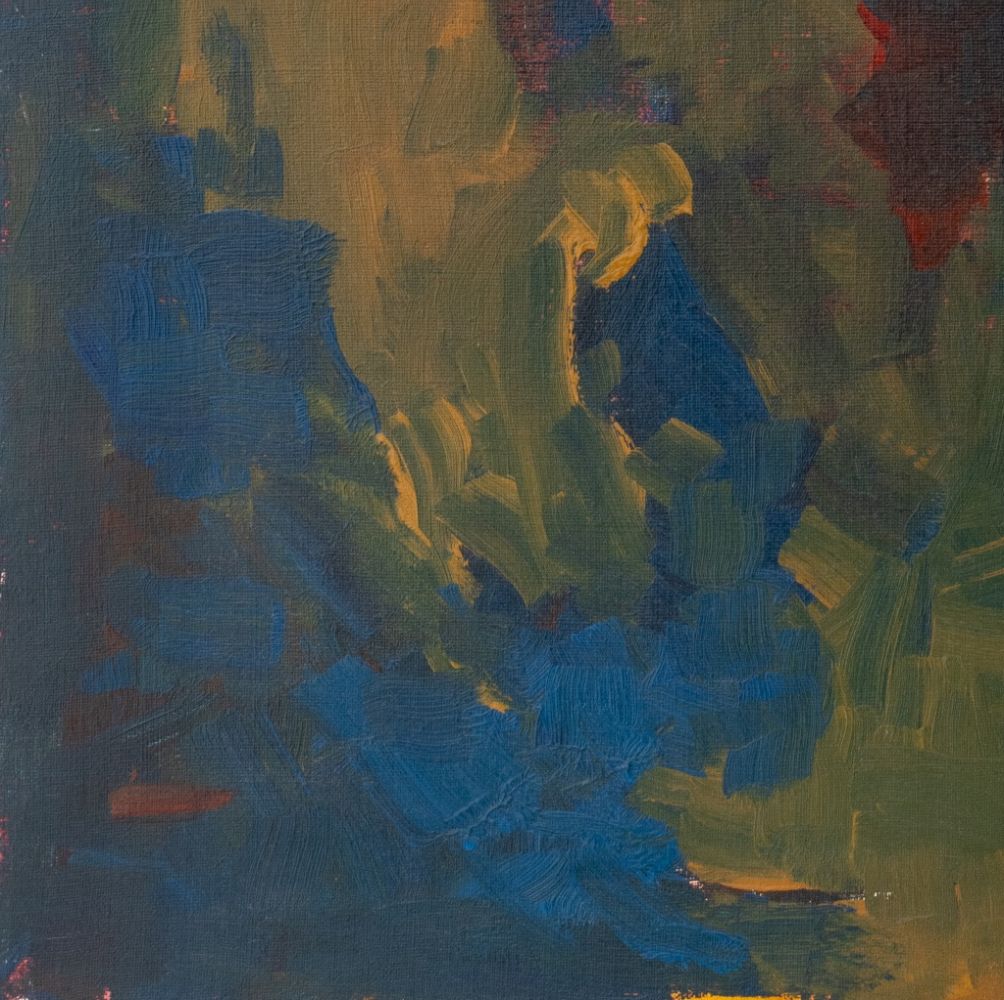 Robert O'Meara (American, 1957-2024), Abstract Composition in Blue and Yellow, Oil on Canvas, unsigned, unframed. 20" H x 16" W. Provenance: From a 333 East 75th Street Estate. Keywords: Painting, Oil painting, Works on Canvas, Ochre, Abstraction, Abstract Expressionism, Expressionist, AbEx, Color field, Contemporary Art
