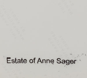 Anne Sager (American, 1930-2024), Kneeling Female Nude, Color Photograph, Chromogenic Print on Kodak Paper, from the "Women Over 50" series, depicting a woman in lingerie crawling over richly patterned carpets, with artist's estate stamp to verso, unframed. 36.75" H x 30" W. Provenance: From a 35 East 75th Street Estate. Keywords: Color Photography, Prints, Multiples, C-Print, Portrait, Portraiture, Intimate, Sensual, Erotic, Lace, Tights, Scarf, Women Artists, Contemporary Art
