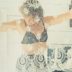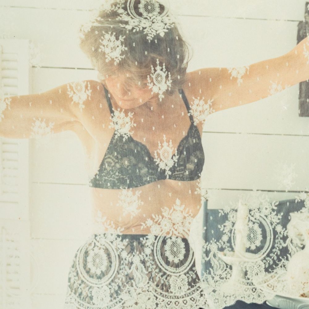 Anne Sager (American, 1930-2024), Standing Female Figure, Color Photograph, Chromogenic Print, from the "Women Over 50" series, woman in lingerie upholding lace, stamped “Anne Sager 19” to verso, unframed. Image: 6.75" H x 7.5" W; sheet: 10" H x 8" W. Provenance: From a 35 East 75th Street Estate. Keywords: Color Photography, Prints, Multiples, Portrait, Portraiture, Intimate, Sensual, Vanity, Women Artists, Contemporary Art