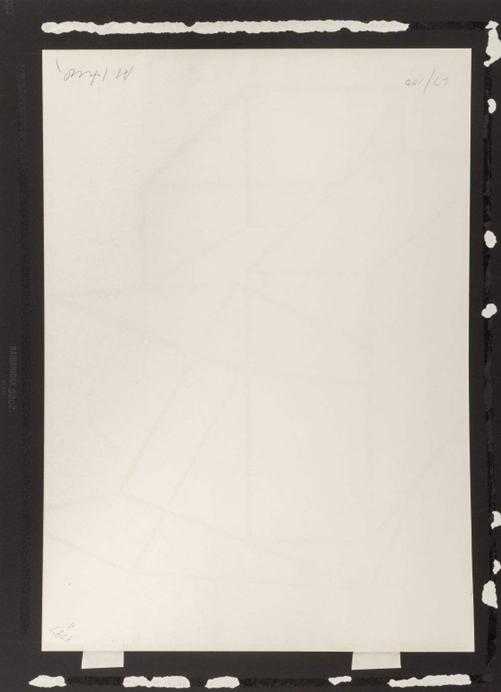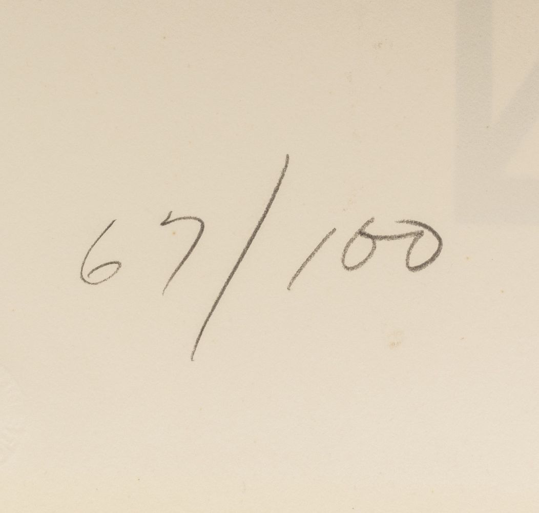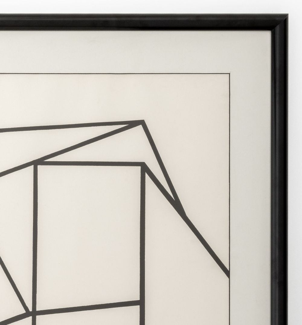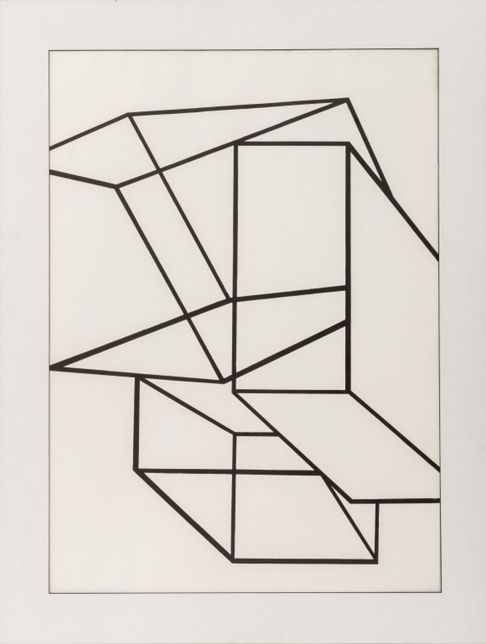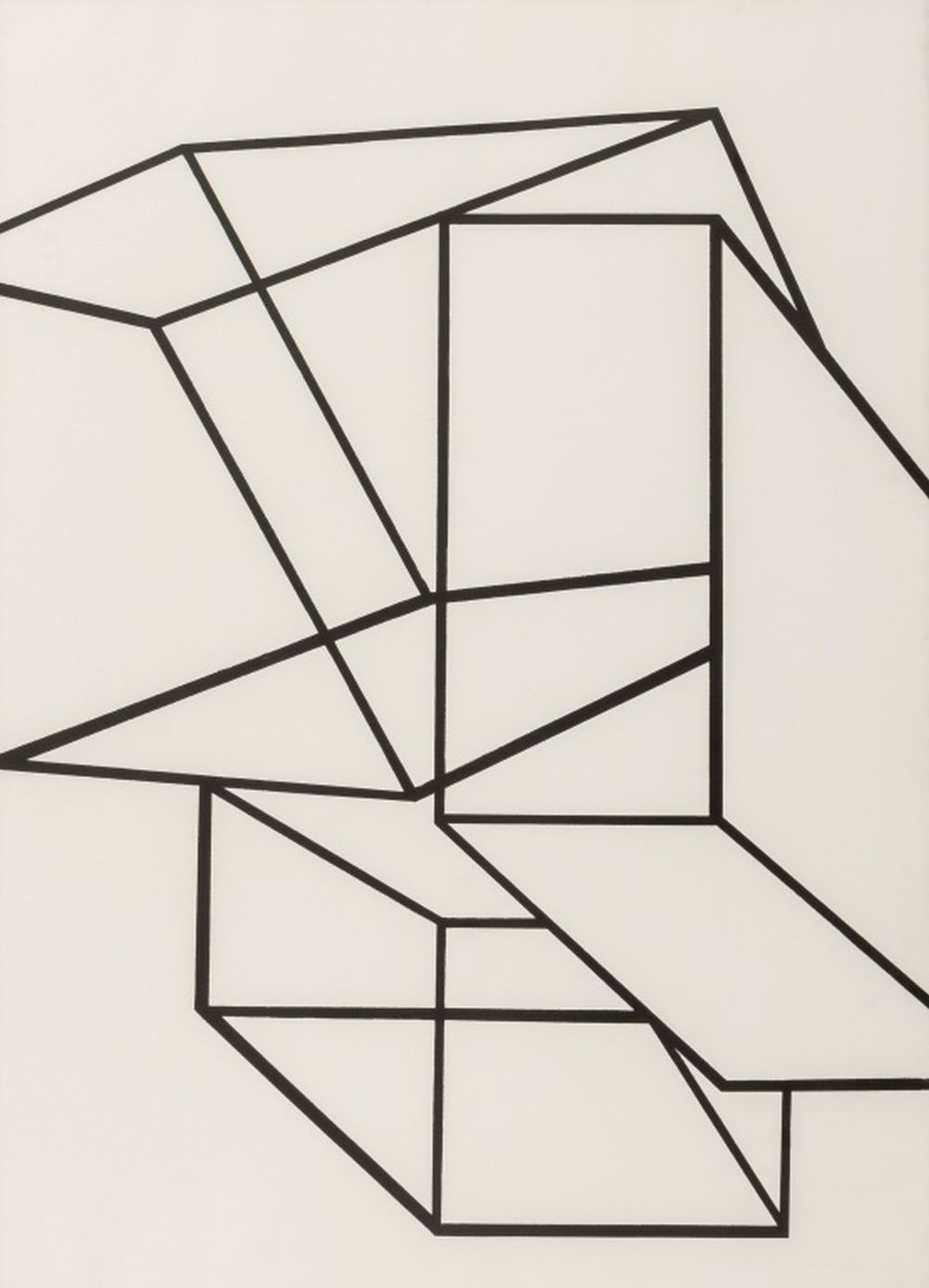 Al Held (American, 1928-2005), Untitled (Cubes), Lithograph on Strathmore Paper, 1969, signed in pencil and numbered edition "67 / 100" to verso, Strathmore blindstamp lower right corner, ebonized frame. Image: 33.75" H x 24" W; frame: 41.5" H x 31.5" W x 1.25" D. Provenance: From a New York City Corporate Collection. Keywords: Prints, Multiples, Black and white, Post-Painterly Abstraction, Abstract, Abstract Expressionist, Abstract Expressionism, Geometric, Post-War and Contemporary Art