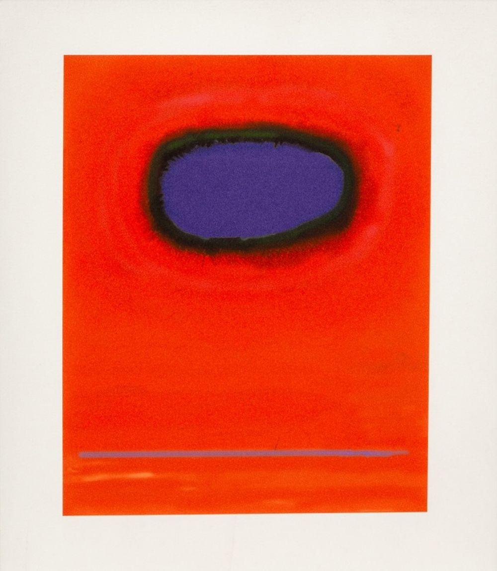 Anne Sager (American, 1930-2024), Abstract Composition, Lithograph on Paper, apparently unsigned, with artist's estate stamp to verso, unframed. Image: 10" H x 8" W; sheet: 12.75" H x 11" W. Provenance: From a 35 East 75th Street Estate. Keywords: Prints, Multiples, Abstraction, Orange Red, Ultramarine Blue, Mark Rothko Manner, Polychrome, Women Artists, Contemporary Art