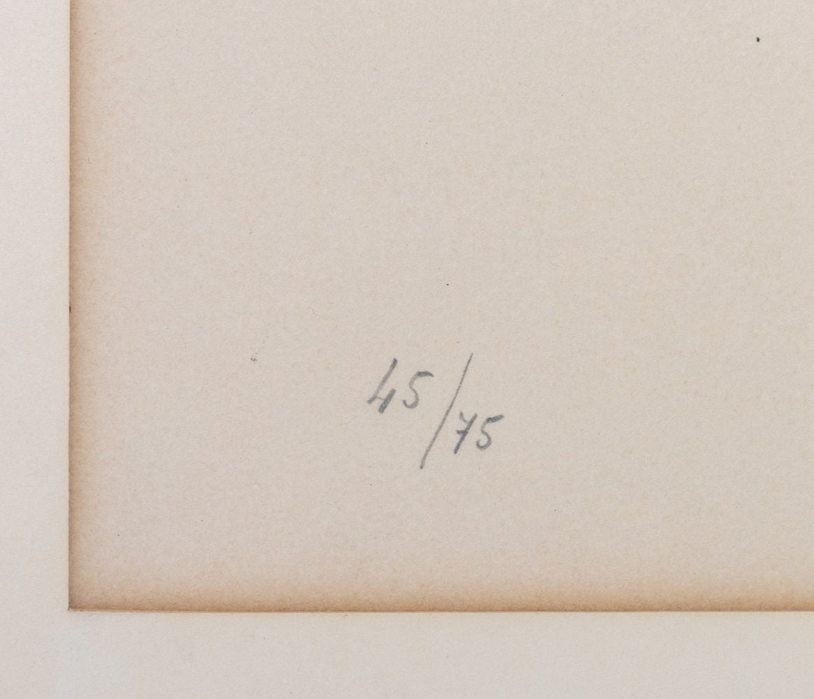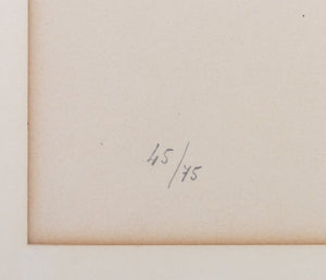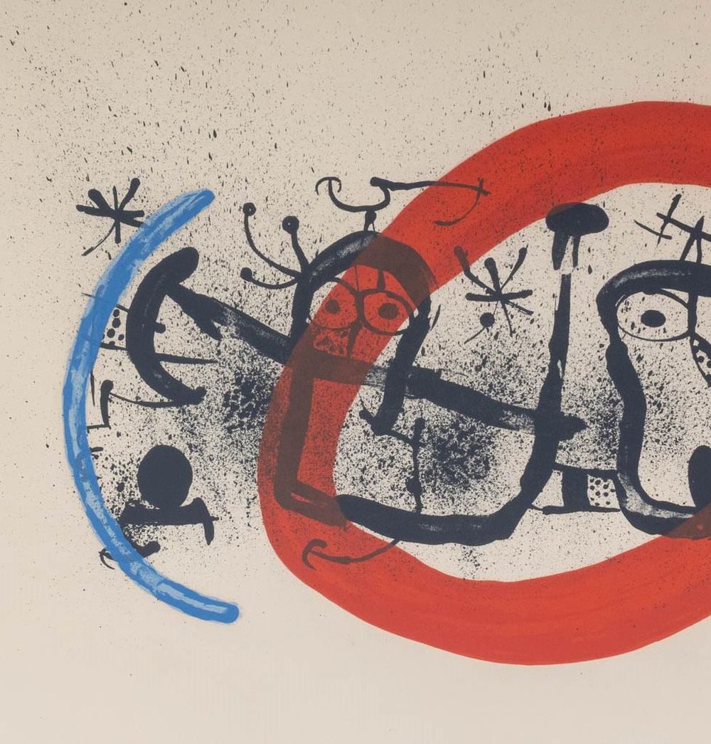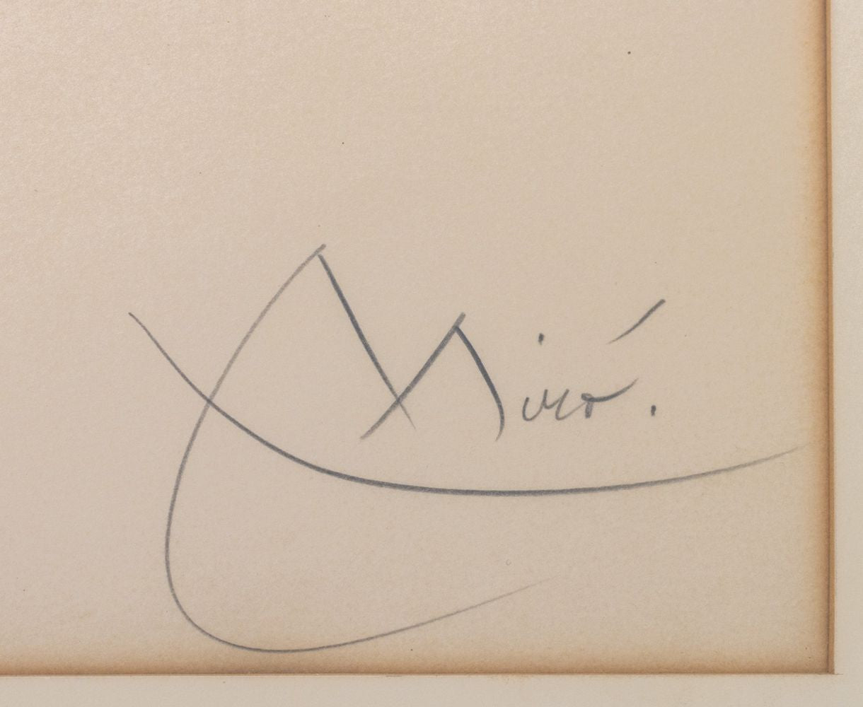 Joan Miro (Spanish, 1893-1983), "Osaka", Lithograph in Colors, 1970, signed in pencil "Miro" lower right, numbered edition "45/75" lower left, giltwood frame. Image: 21" H x 28" W; frame: 30" H x 37" W. Provenance: From an Upper East Side Collection. Literature: Mourlot, 681. Keywords: Prints, Multiples, Ma de Provebis, Abstraction, Surrealist, Surrealism, Post-Cubist, Cubism, Modern Art, Post-War and Contemporary Art