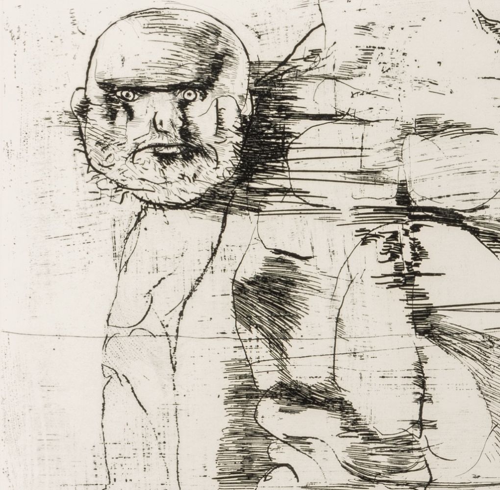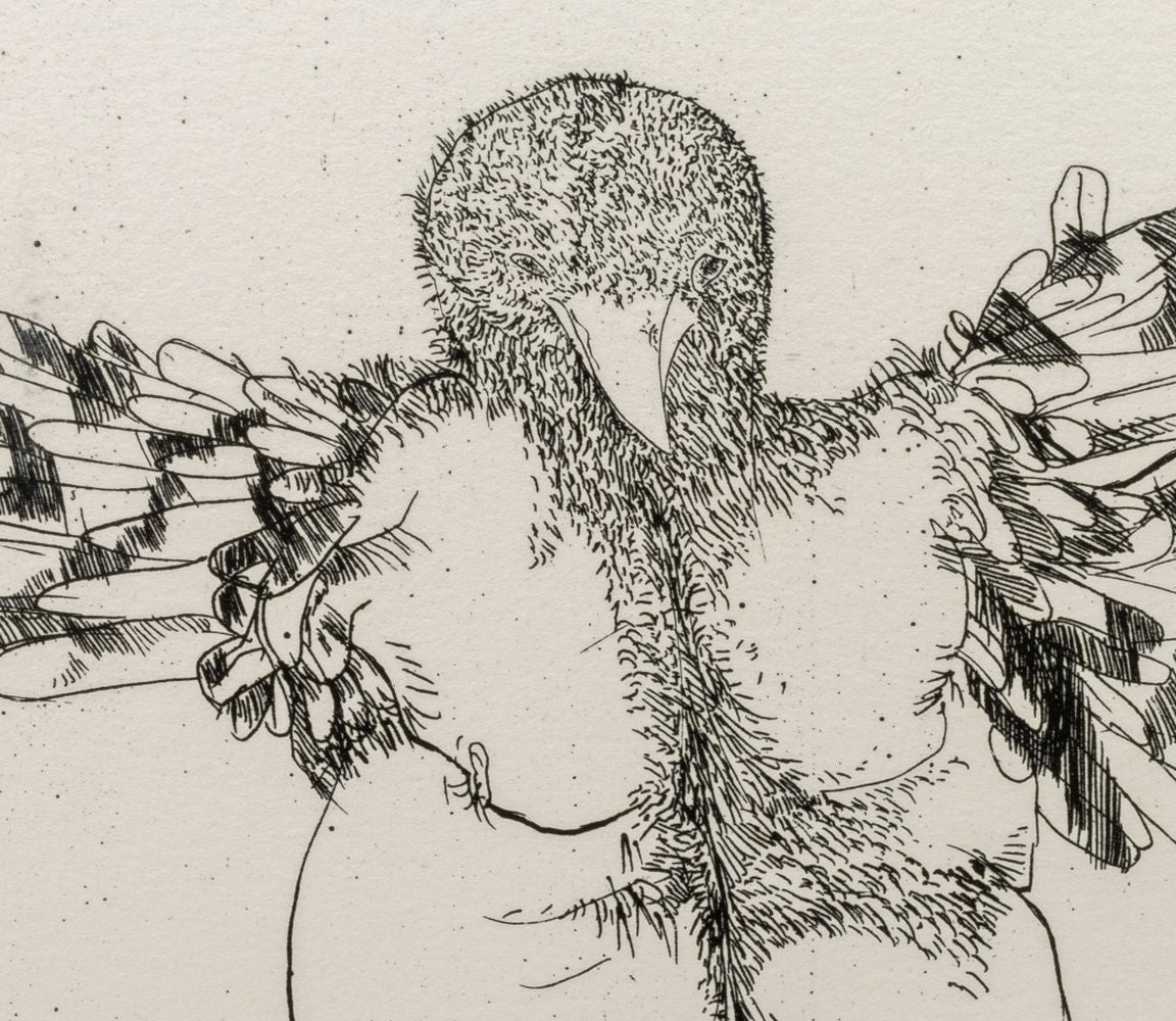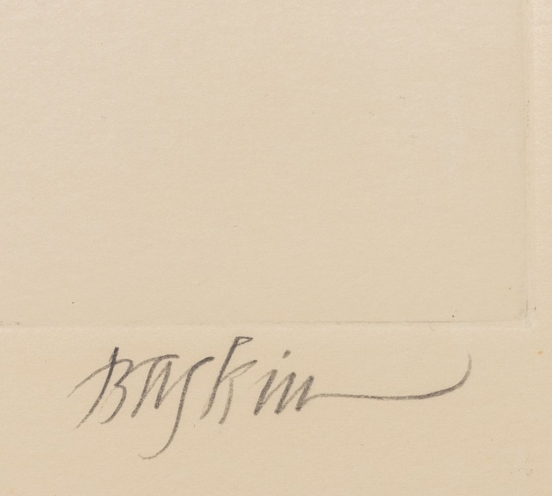 Leonard Baskin (American, 1922-2000), Three Surrealist Figural Compositions, Etching on Wove Paper, each marked edition "A.P" lower left and signed in pencil lower right, comprising: seated devil figure, decapitated man signed and dated "1969" in plate, and bird-man signed and dated "1969" in plate, each unframed. Largest image: 17.5" H x 25.5" W; sheet: 23.5" H x 30" W. Provenance: From a New York City Collection. Keywords: Prints, Multiples, Intaglio, Artist's Proof, Nude Figure, Figurative, Demon, Headless, Winged, Grotesque, Horror, Harpy, Surrealism, 20th Century School, Post-War and Contemporary Art