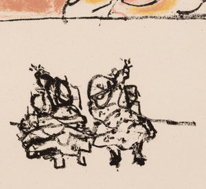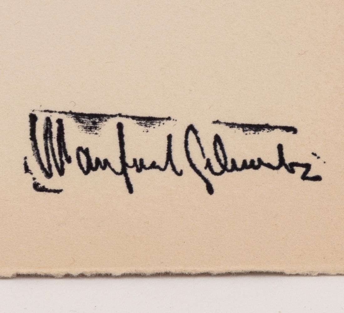 Manfred Schwartz (American, b. Poland, 1909-1970), Flamenco Dancer, Lithograph in Colors on Paper, numbered edition "7" lower left, two dancing figures underneath, with the artist's signature stamped lower right, unframed. Image: 13.5" H x 10.25" W; sheet: 23.5" H x 18" W. Provenance: From a 35 East 75th Street Estate. Keywords: Prints, Multiples, Abstraction, Performer, Bailaora, Figural, Figurative, Rose, Whimsical, Colorful, Polychrome, Provincetown, P-town Artist, Post-War Art