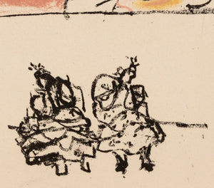 Manfred Schwartz (American, b. Poland, 1909-1970), Flamenco Dancer, Lithograph in Colors on Paper, numbered edition "9" lower left, two dancing figures underneath, with the artist's signature stamped lower right, unframed. Image: 13.5" H x 10.25" W; sheet: 24" H x 18.25" W. Provenance: From a 35 East 75th Street Estate. Keywords: Prints, Multiples, Abstraction, Performer, Bailaora, Figural, Figurative, Rose, Whimsical, Colorful, Polychrome, Provincetown, P-town Artist, Post-War Art