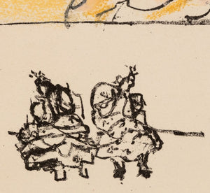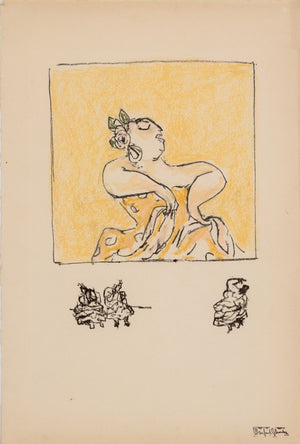 Manfred Schwartz (American, b. Poland, 1909-1970), Flamenco Dancer, Lithograph and Pastels on Paper, three dancing figures underneath, with the artist's signature stamped lower right, unframed. Image: 13.5" H x 10.25" W; sheet: 22.25" H x 15" W. Provenance: From a 35 East 75th Street Estate. Keywords: Prints, Multiples, Color Study, Abstraction, Performer, Bailaora, Figural, Figurative, Rose, Whimsical, Colorful, Polychrome, Provincetown, P-town Artist, Post-War Art