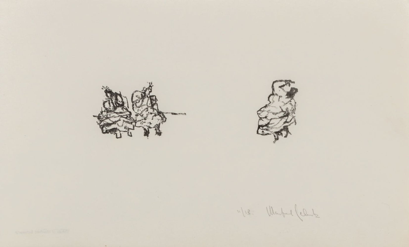 Manfred Schwartz (American, b. Poland, 1909-1970), The Flamenco Dancers, Lithograph on Rice Paper, numbered edition "11/13" and signed in pencil, lower right, with artist's estate stamp to verso, unframed. Image: 3" H X 9" W; sheet: 11" H x 18" W. Provenance: From a 35 East 75th Street Estate. Keywords: Prints, Multiples, Test Print, Abstraction, Performer, Bailaora, Figural, Figurative, Whimsical, Colorful, Polychrome, Provincetown, P-town Artist, Post-War Art