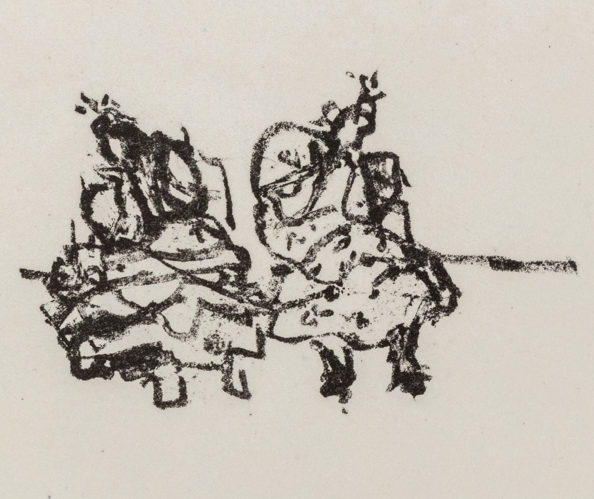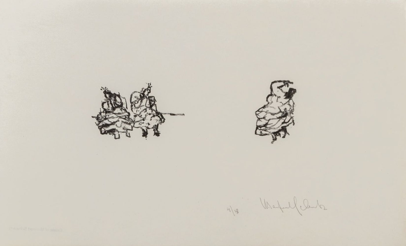 Manfred Schwartz (American, b. Poland, 1909-1970), The Flamenco Dancers, Lithograph on Rice Paper, numbered edition "4/13" and signed in pencil, lower right, with artist's estate stamp to verso, unframed. Image: 3" H X 9" W; sheet: 11" H x 18" W. Provenance: From a 35 East 75th Street Estate. Keywords: Prints, Multiples, Test Print, Abstraction, Performer, Bailaora, Figural, Figurative, Whimsical, Colorful, Polychrome, Provincetown, P-town Artist, Post-War Art