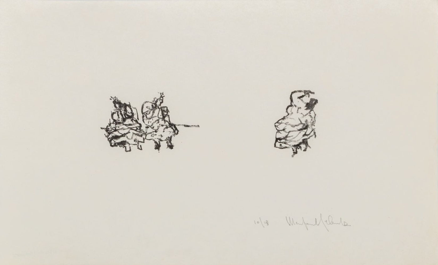 Manfred Schwartz (American, b. Poland, 1909-1970), The Flamenco Dancers, Lithograph on Rice Paper, numbered edition "10/13" and signed in pencil, lower right, with artist's estate stamp to verso, unframed. Image: 3" H X 9" W; sheet: 11" H x 18" W. Provenance: From a 35 East 75th Street Estate. Keywords: Prints, Multiples, Test Print, Abstraction, Performer, Bailaora, Figural, Figurative, Whimsical, Colorful, Polychrome, Provincetown, P-town Artist, Post-War Art
