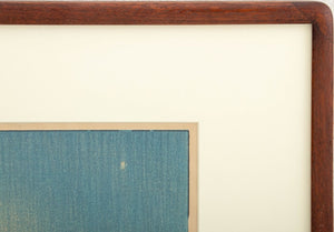 Shiro Kasamatsu (Japanese, 1898-1991), "Yanaka Pagoda", Woodblock Print on Paper, Japanese character marks to left border, chop seal stamp lower right, wood frame. Image: 14.25" H x 9.5" W; frame: 20.75" H x 16.75" W. Provenance: From a New York City Collection. Keywords: Prints, Multiples, Asian Art, Ukiyo-e Style, Pagoda, Modernist, Architectural, Buildings, Landscape, 20th Century Art