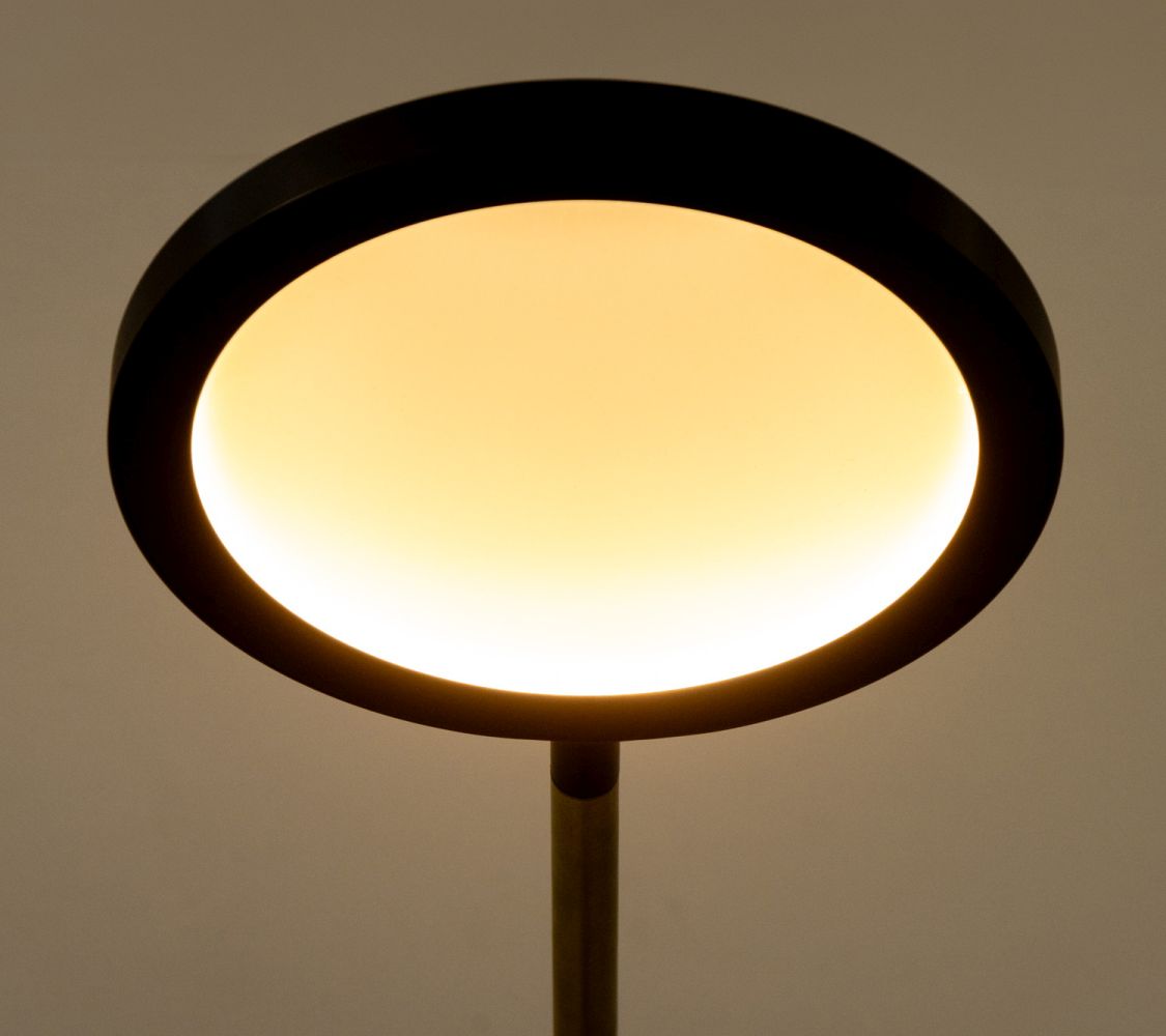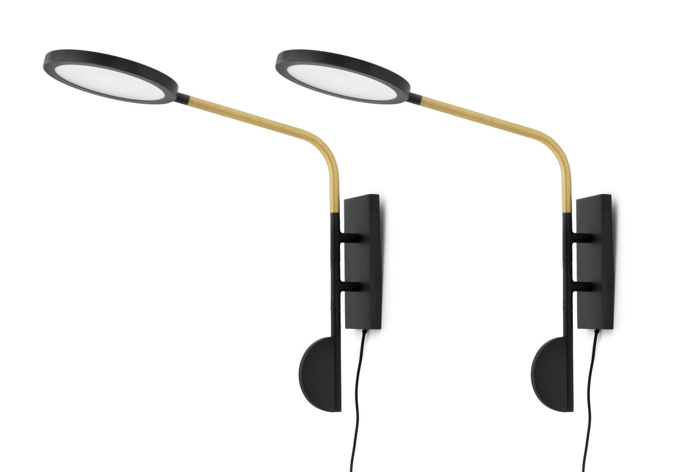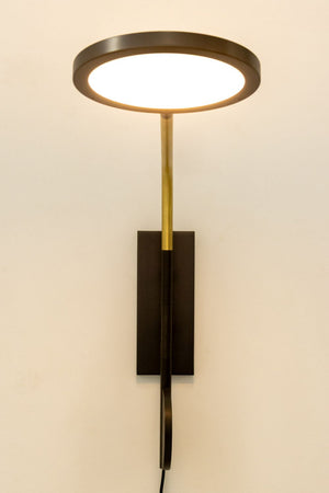 Pair of Discus Adjustable Wall Sconces. Each: 26" H x 9.5" W x 4.25" D. Provenance: From a New York City Collection. Keywords: Contemporary design, Lighting, Fixtures, Wall sconce, Wall-mounted lamps, Interior design, Decorative Arts