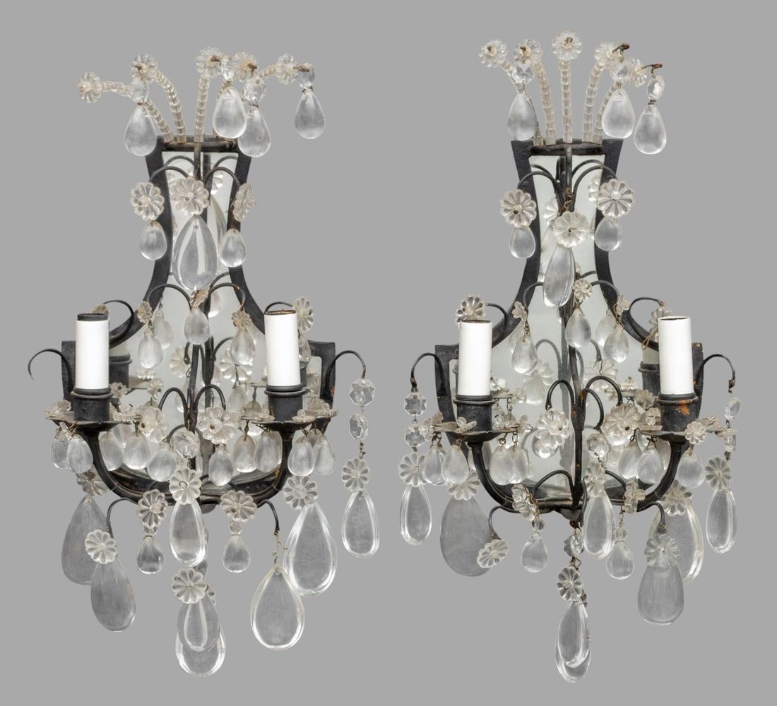 Louis XVI Style Crystal Patinated Metal Sconces, 2