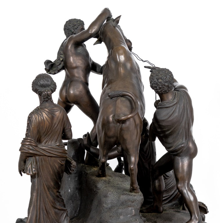 Note: This sculpture derives from the famous marble statue discovered in the Baths of Caracalla in 1545. The next year, it went into the possession of the Pope's family in the Farnese Palace in Rome, where, in 1550, it was partially restored under Michelangelo's advisement; it underwent a second restoration by Gian Battista Bianchi circa 1580. A portion of the Farnese Collection, including the Farnese Bull, was sent to Naples in 1788 and later placed in the Museo Nazionale, where it still remains today.