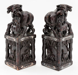 Chinese Carved Hardstone Large Chop Seals, Pair