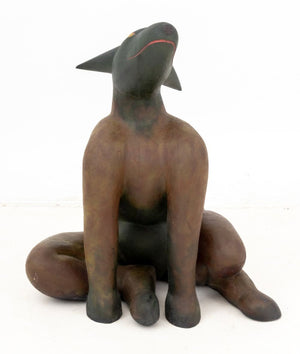 Folk Art Seated Dog Polychrome Painted Sculpture