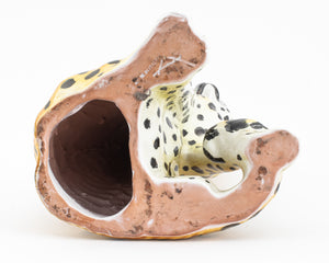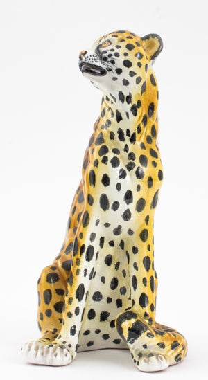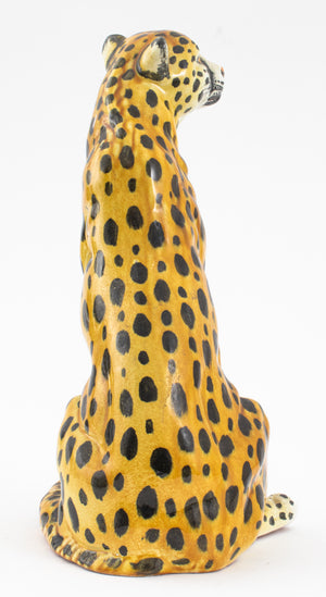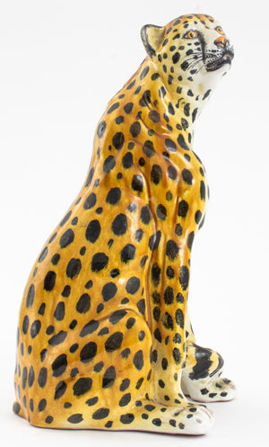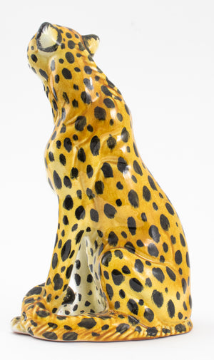 Italian Glazed Ceramic Seated Leopard Sculpture