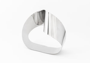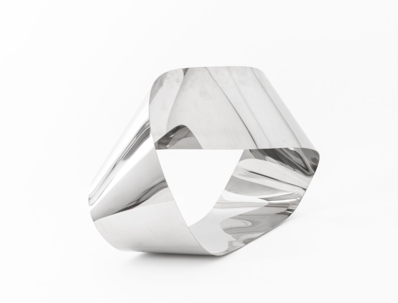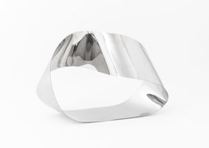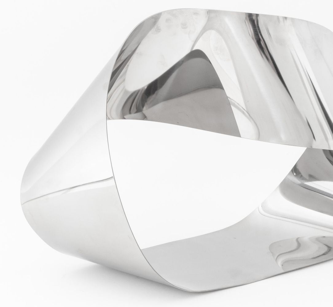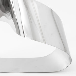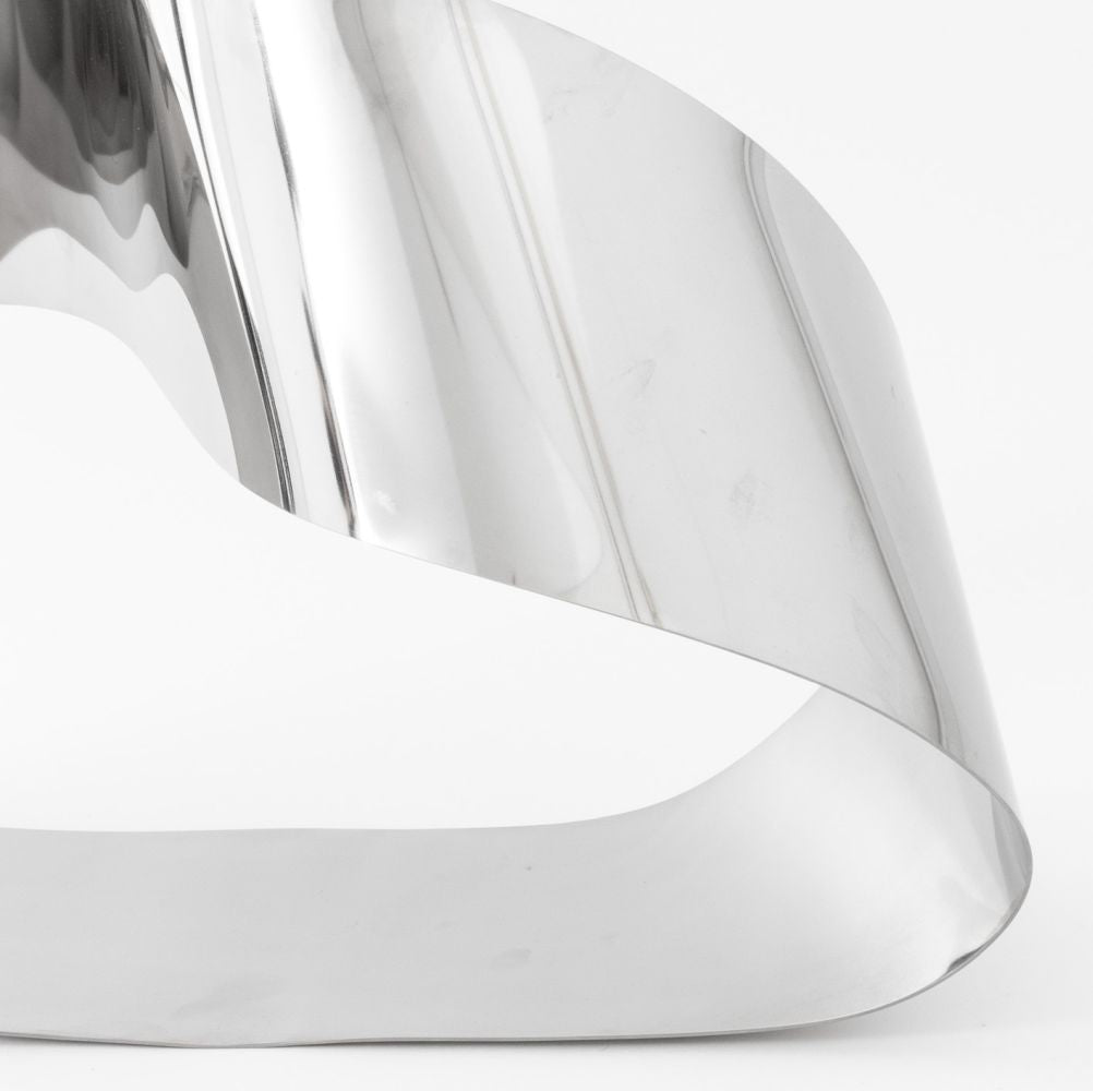 Megaron Abstract Freeform Chrome Sculpture, marked to underside. 13" H x 18.75" W x 8.5" D. Provenance: From a 30 West 63rd Street Collection. Keywords: Postmodern, Designer, Statue, Tabletop sculpture, Abstraction, Wave, Decorative Arts