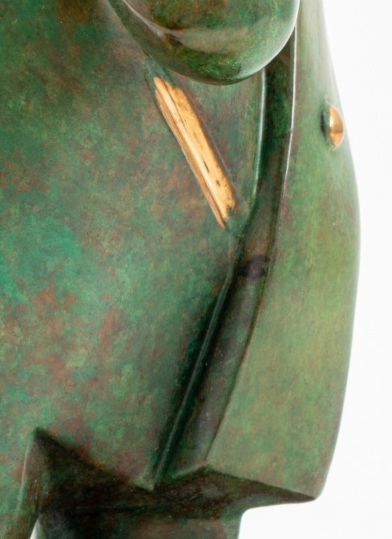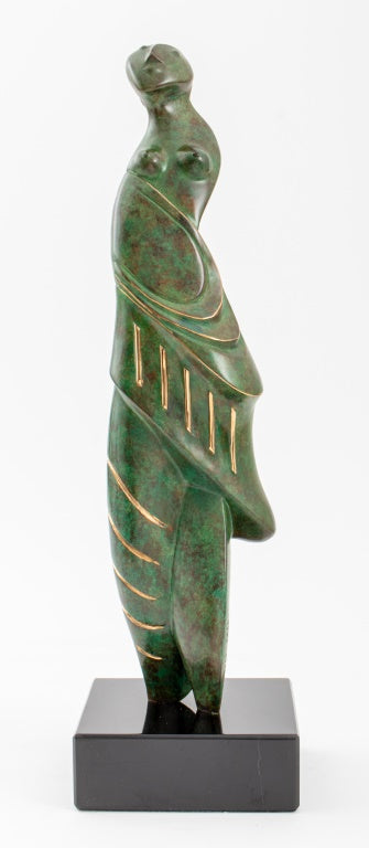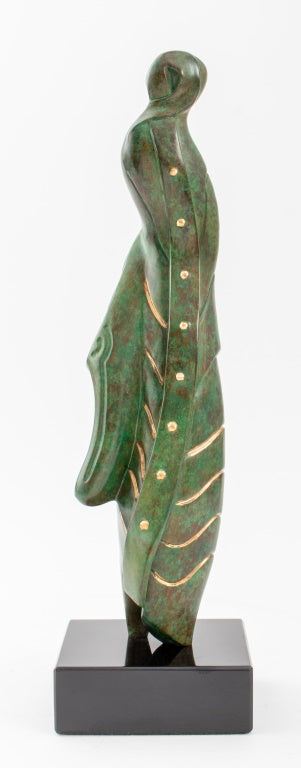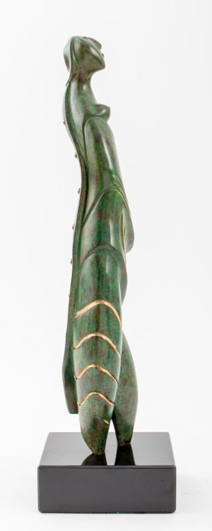 Ronald K. Parker (American, b. 1939) "Love" Verdigris Patinated and Gilt Bronze Sculpture, 1999, signed "Parker" and marked "c 99 20/99" to leg. Provenance: From a New York City Collection. Keywords: Statue, American School, Cast Bronzes, Abstraction, Female figure, Woman, Figural, Figurative, Abstracted figure, Contemporary Art, Decorative Arts.