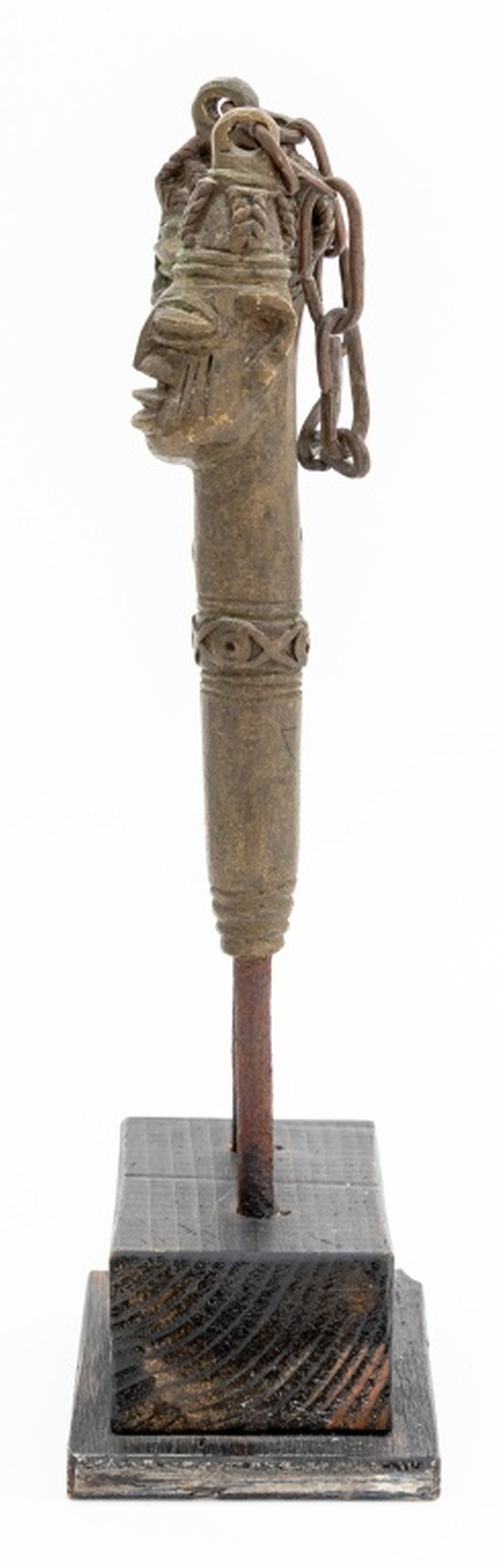 Yoruba Edan Ogboni Figural Brass Staffs, 2 Pairs