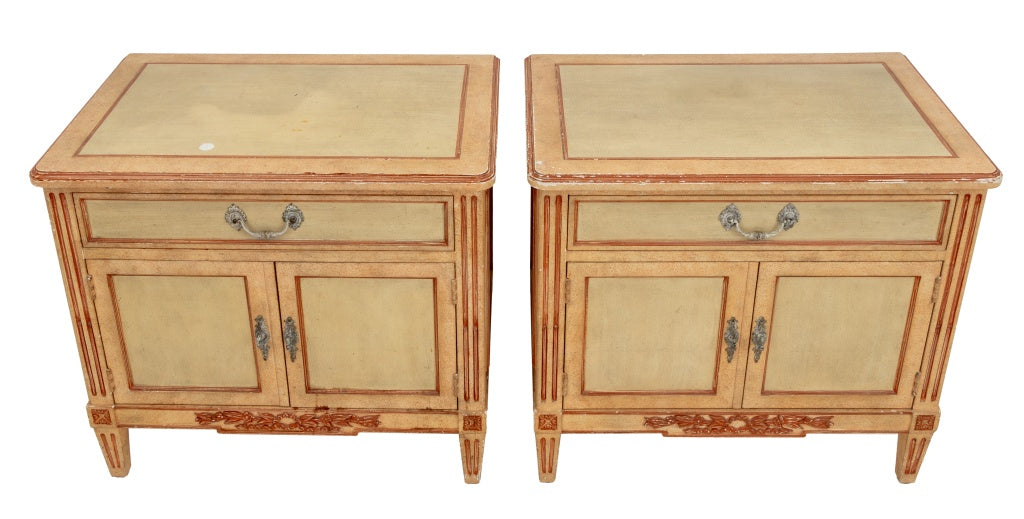 Baker Louis XVI Style Painted Bedside Cabinets, Pair