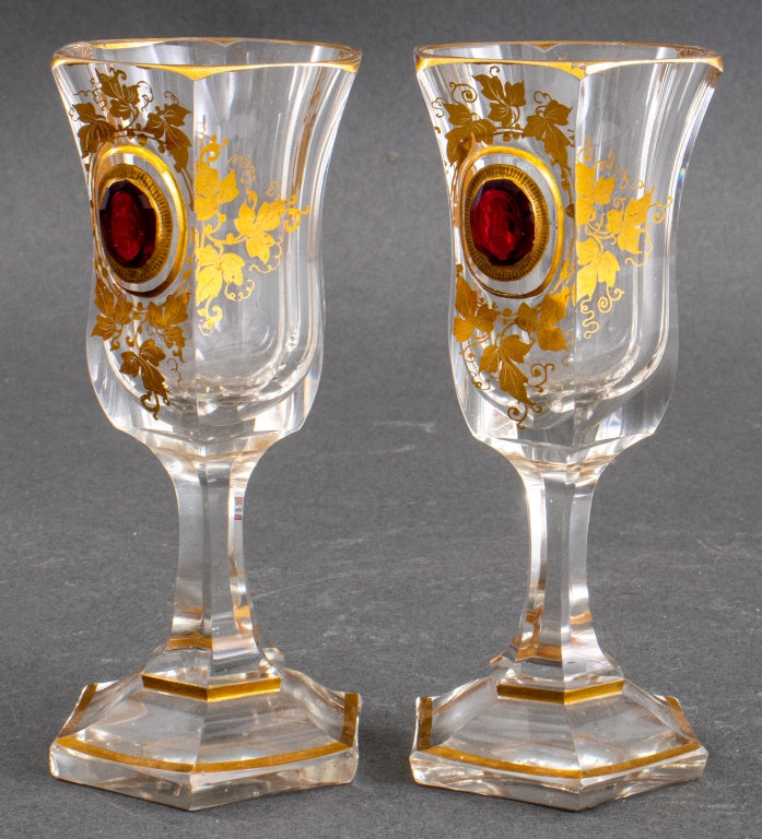 Bohemian Parcel Gilt & Engraved Crystal Glasses, 2