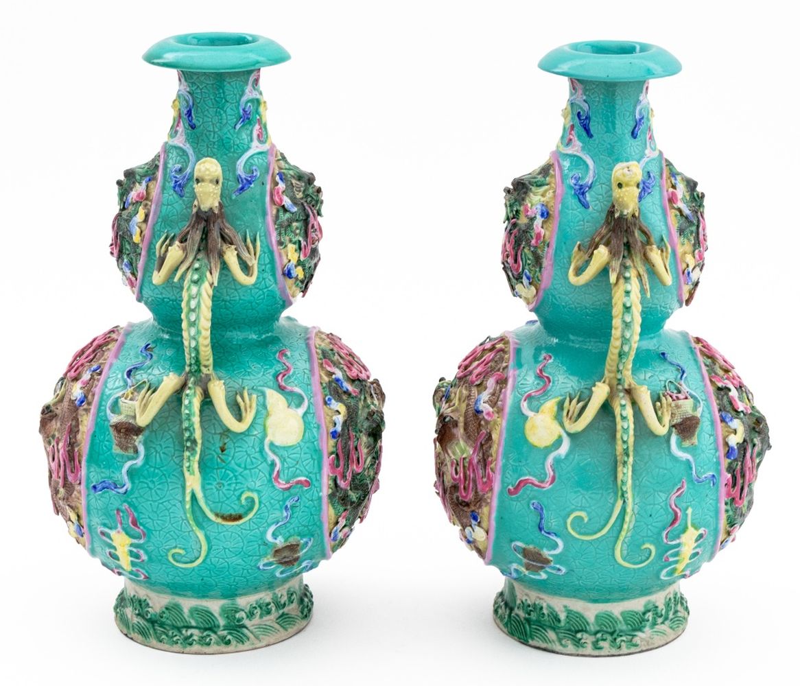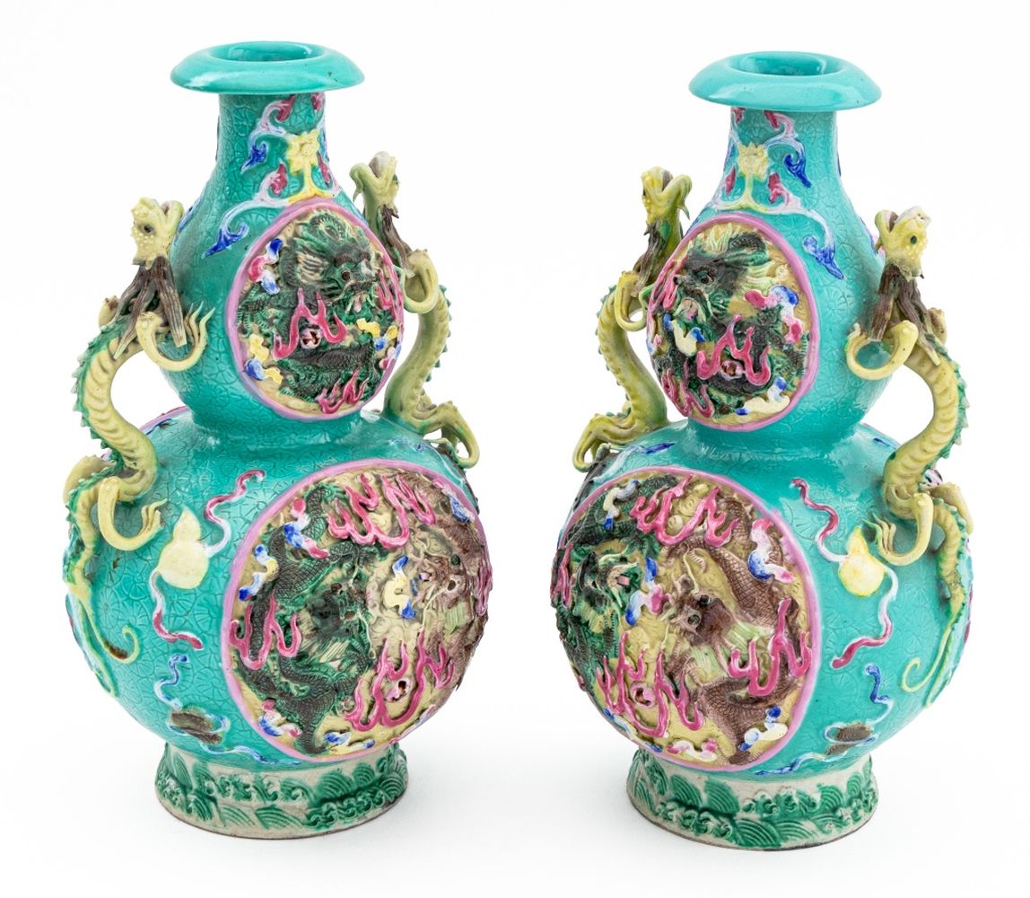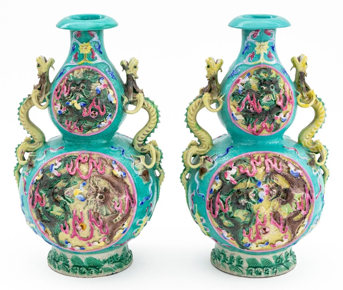 Chinese Porcelain Double Gourd Vases, Pair