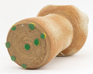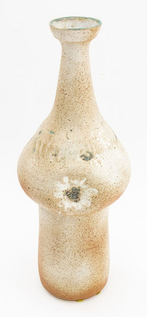 Mid-Century Modern Floral Motif Stoneware Vase, turquoise glaze highlights, illegibly signed to underside.  20.5" H x 8" W. Provenance: From a New York City Collection. Keywords: Art Pottery, Studio Pottery, Ceramics, MCM, Vintage, Flowers, Speckled, Vessel, Decorative Arts