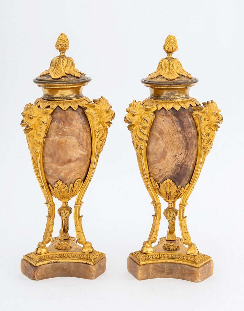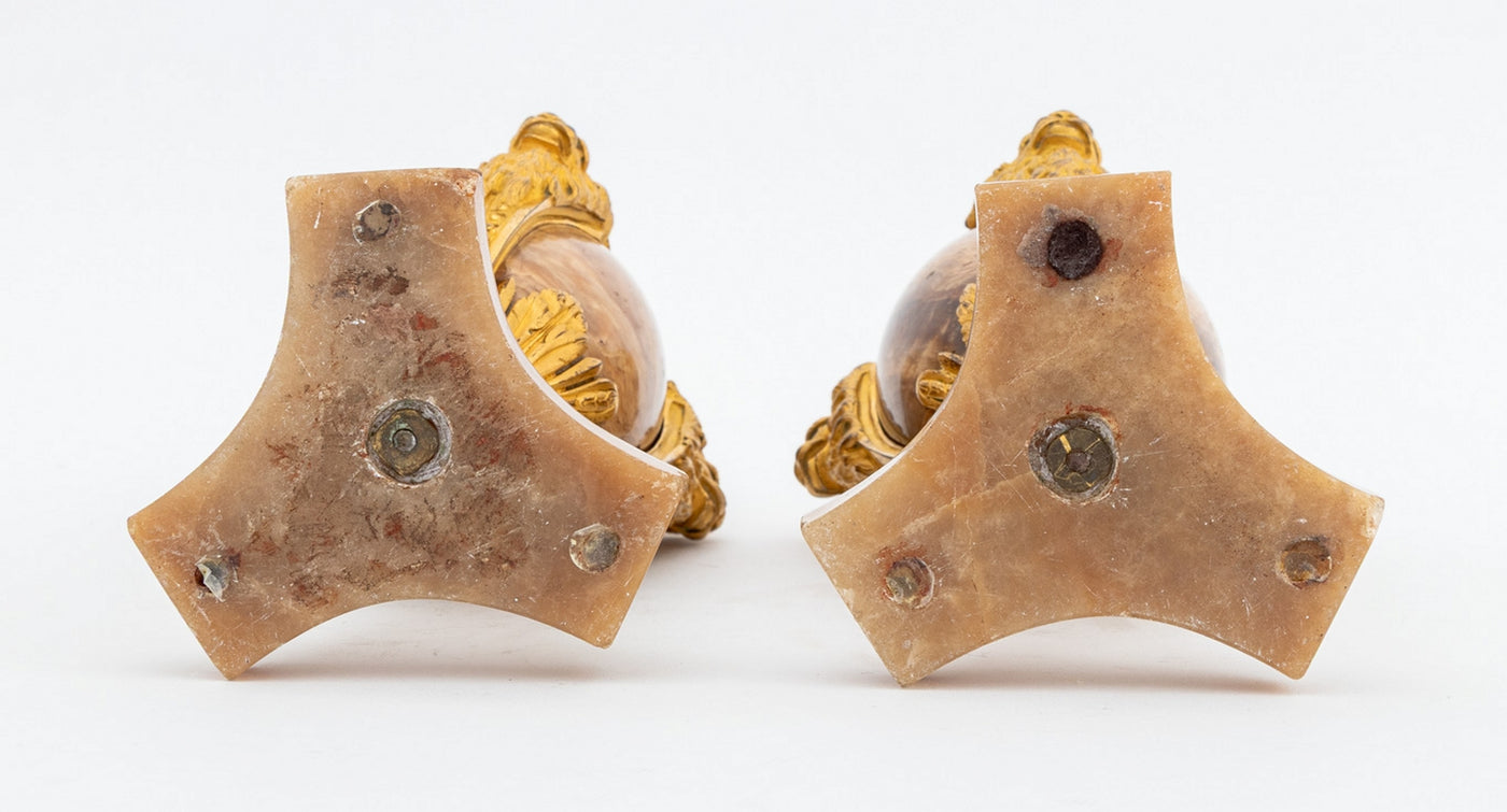 Pair of Louis XVI Ormolu & Egyptian Alabaster Urns