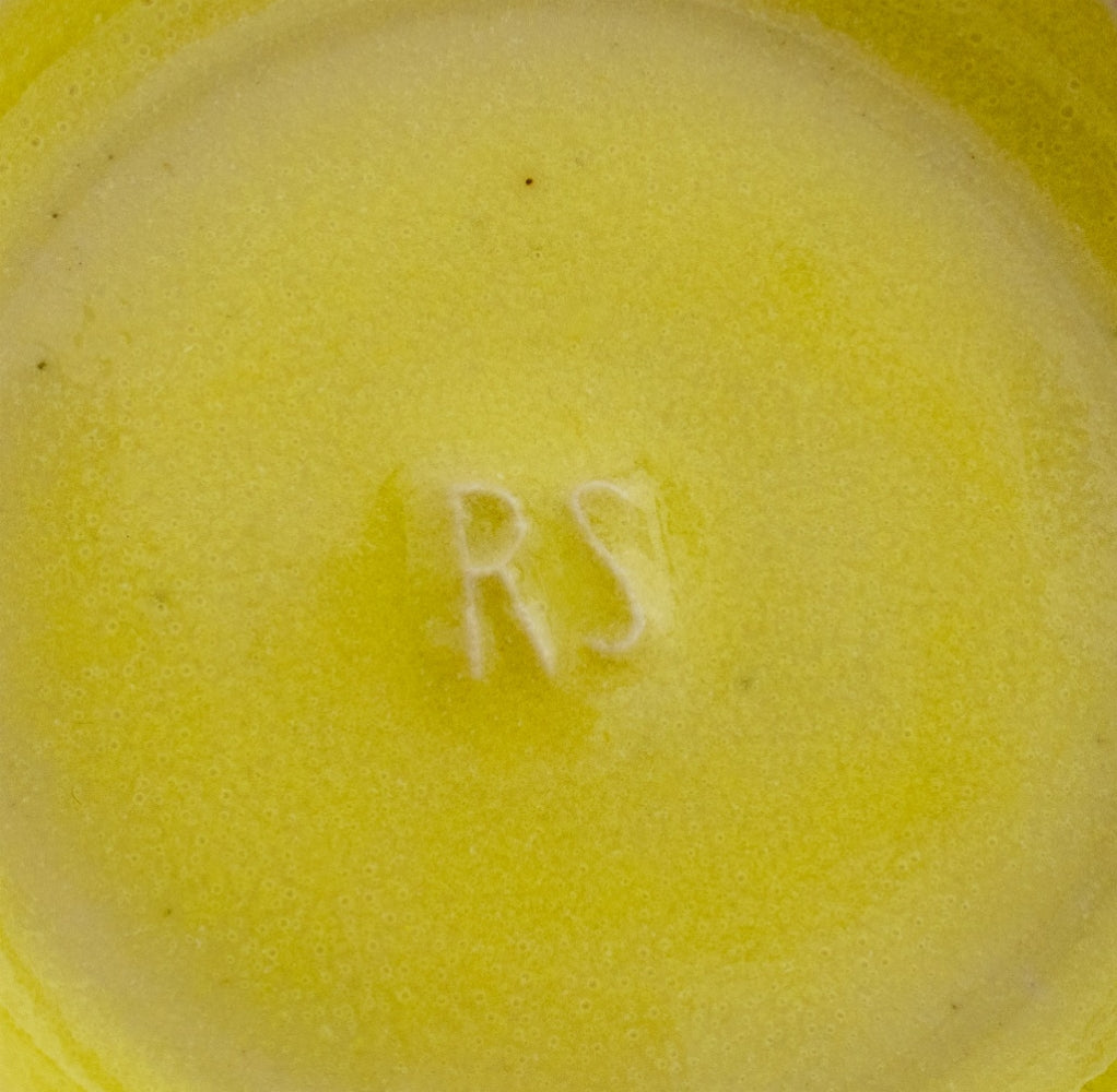 Rupert Spira (English, b. 1960) Set of Six Yellow Glazed Stoneware Sauce Dishes, marked "RS" to the underside. 1.5" H x 5" Diameter. Provenance: Property from an Upper East Side Townhouse. Keywords: Ceramics, Art Pottery, Studio Pottery, Vessel, Tableware, Dinnerware, Dining, British, Glazing, Handmade, Minimalist, Minimalism, Decorative Arts