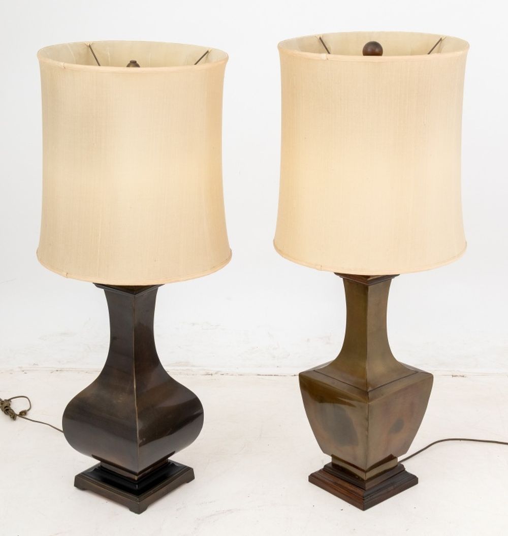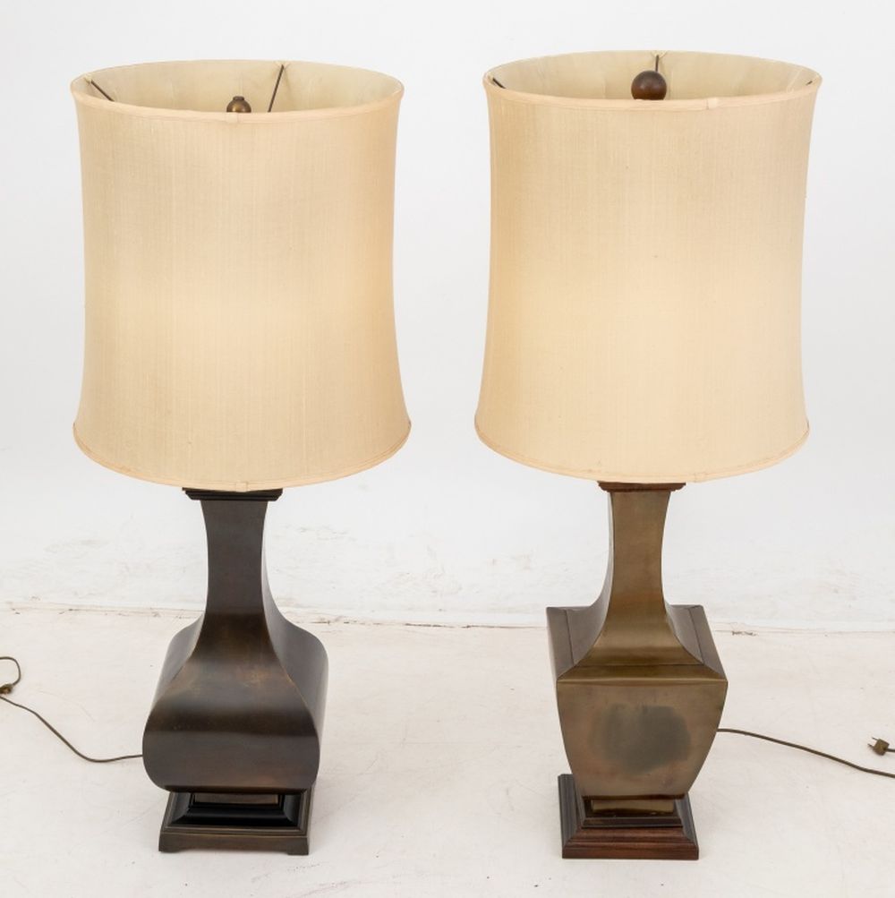 Vasiform Brass Table Lamps, Assembled Pair