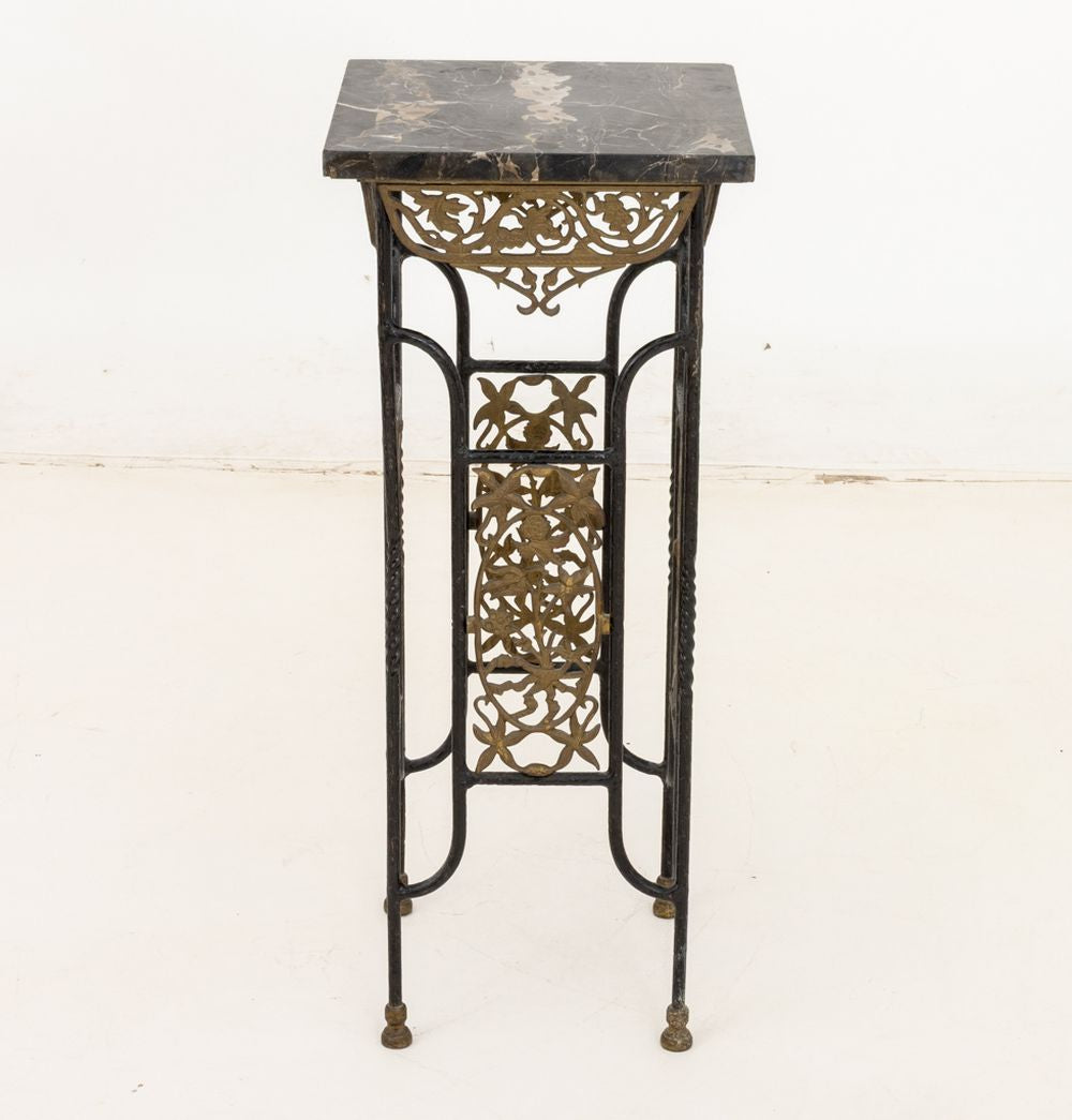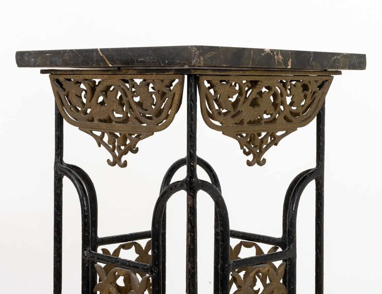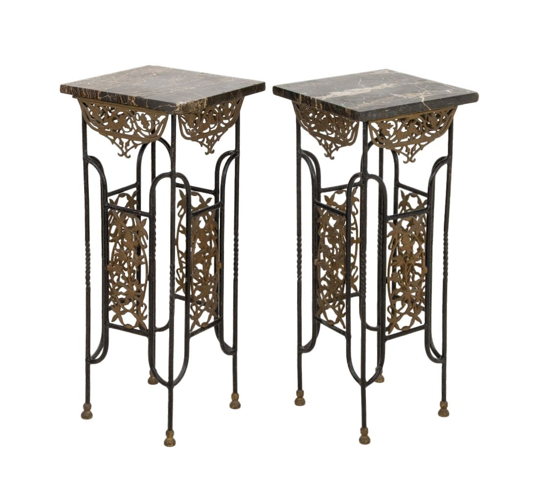 Brandt Style Wrought Iron & Marble Pedestals, Pair