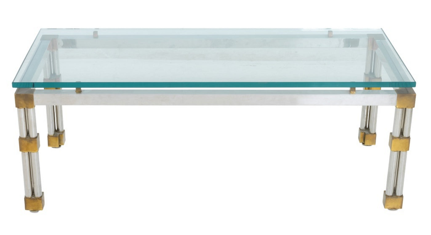 Maison Jansen Style Chrome Glass Top Coffee Table