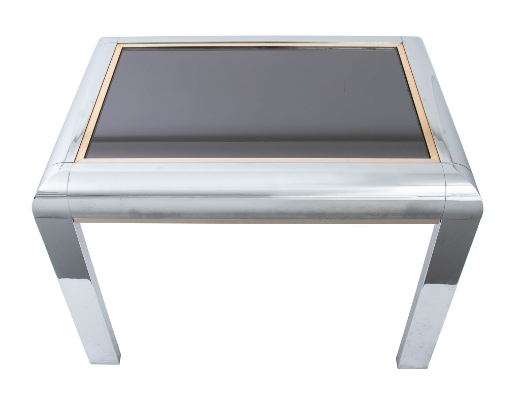 Milo Baughman Chrome & Gilt Brass Side Table