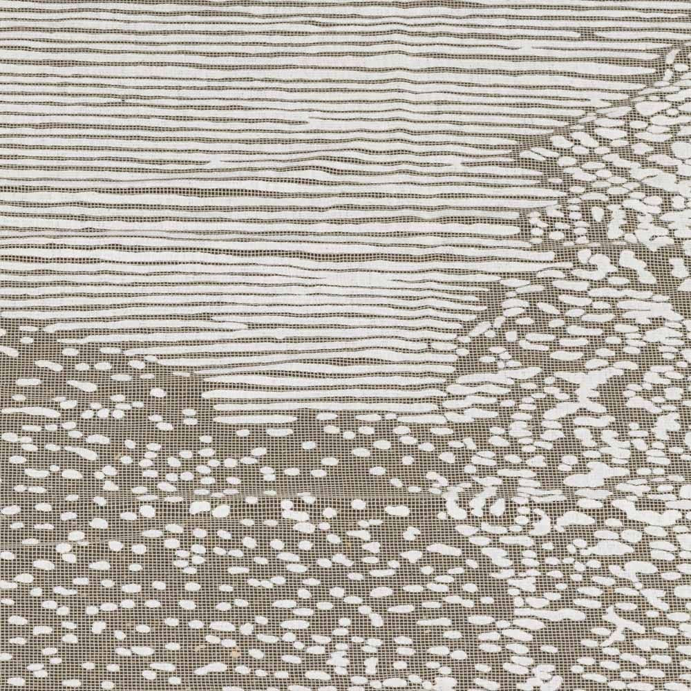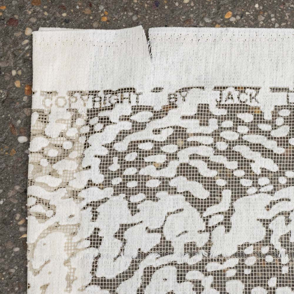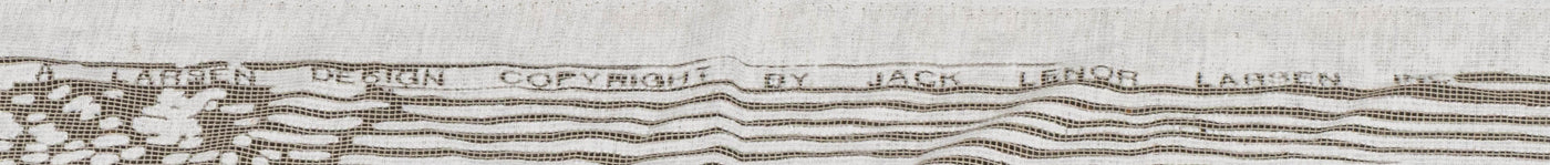 Jack Lenor Larsen (American, 1927-2020) "Pastorale Sheer" Seven Textile Panels, 1976, white dyed nylon and cotton mesh, marked "Pastorale A Larsen Design Copyright by Jack Lenor Larsen" below. Largest: 140.5" L x 116" W. Provenance: From a 225 West 86th Street, New York City Estate. Keywords: Designer, Fabric Art, Mid-Century Modern, MCM, Textiles, Curtains, Upholstery, Decorative Arts