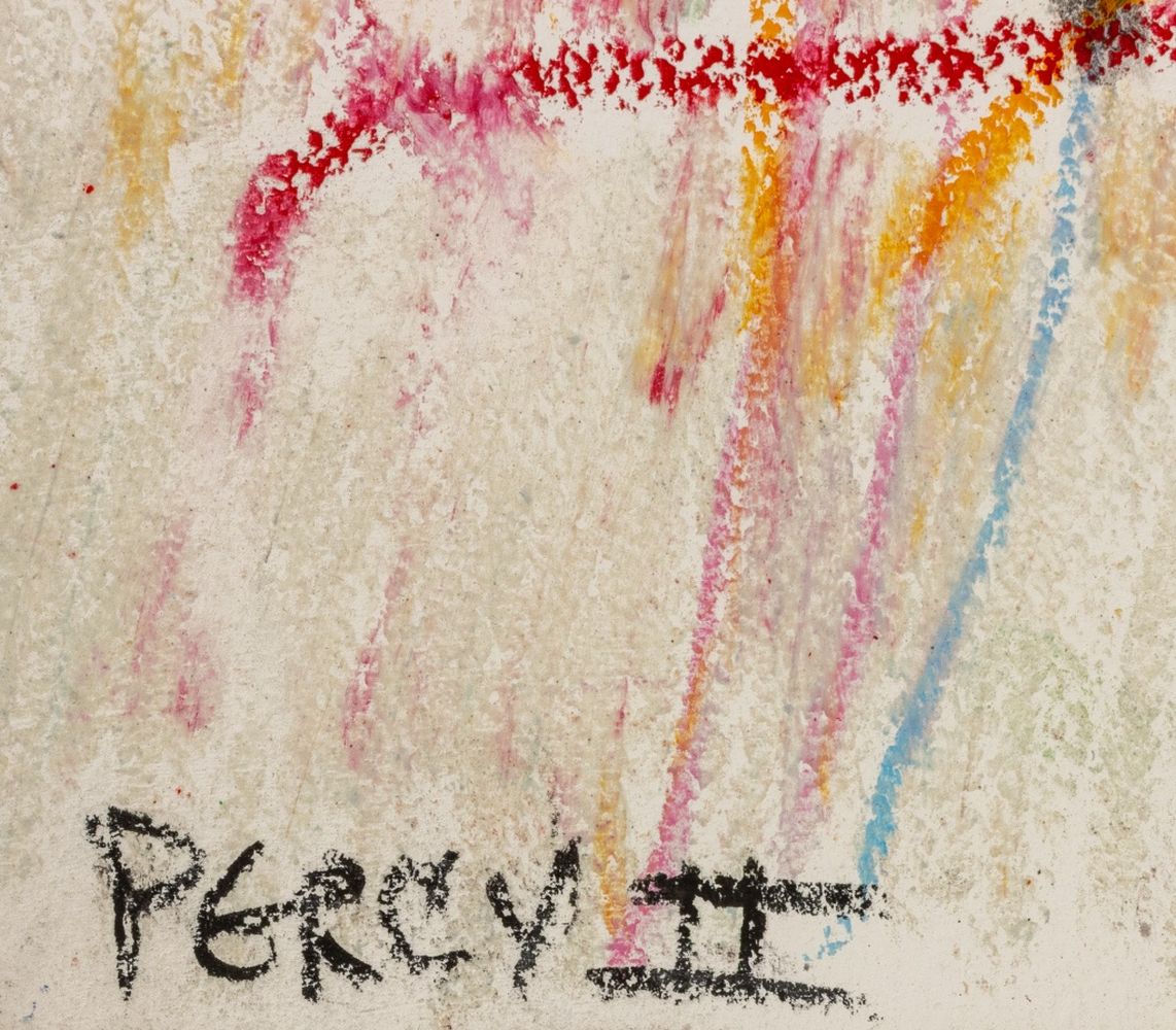Domenick Capobianco (American, b. 1928), "Percy II", Mixed Media on Paper, 1983, pastels, abstract composition, titled lower left, signed and dated lower right, unframed. 45.25" H x 45.25" W. Provenance: From the collection of the artist. Note: Domenick Capobianco is a graduate of Washington University at St. Louis, a Rutgers Fellow (1979), and a Guggenheim Fellow (1984/85). He was an educator and mentor at Rutgers University. Capobianco’s work can be found in collections worldwide, including: The Academie des Beaux-Arts, Ljubljana, Slovenia, The Albertina Museum, Vienna, Austria, and The M.V. Nesterov Museum, Ufa, Russia. Alongside his wife, artist Elfi Schuselka (Austrian, b. 1940), he frequently exhibited with the famed 55 Mercer Gallery in New York. Keywords: Drawing, Works on Paper, Abstraction, Polychrome, Negative Space, Geometric, Patterns, Abstract Expressionist, Abstract Expressionism, AbEx, Second New York School, Post-War and Contemporary Art