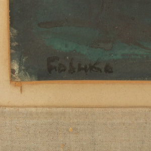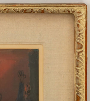 Josef Foshko (Russian, 1891-1971), Cabaret Scene, Gouache on Paper, signed in Cyrillic lower left, carved and painted wood frame. Image: 12.75" H x 16.75" W; frame: 23" H x 26.75" W. Provenance: From a 5th Avenue Estate. Keywords: Painting, Works on Paper, Watercolor, Watercolour, Polychrome, Figural Group, Figurative, Nude Woman, Figures, Abstract, Expressionist, Expressionism, Modern Art