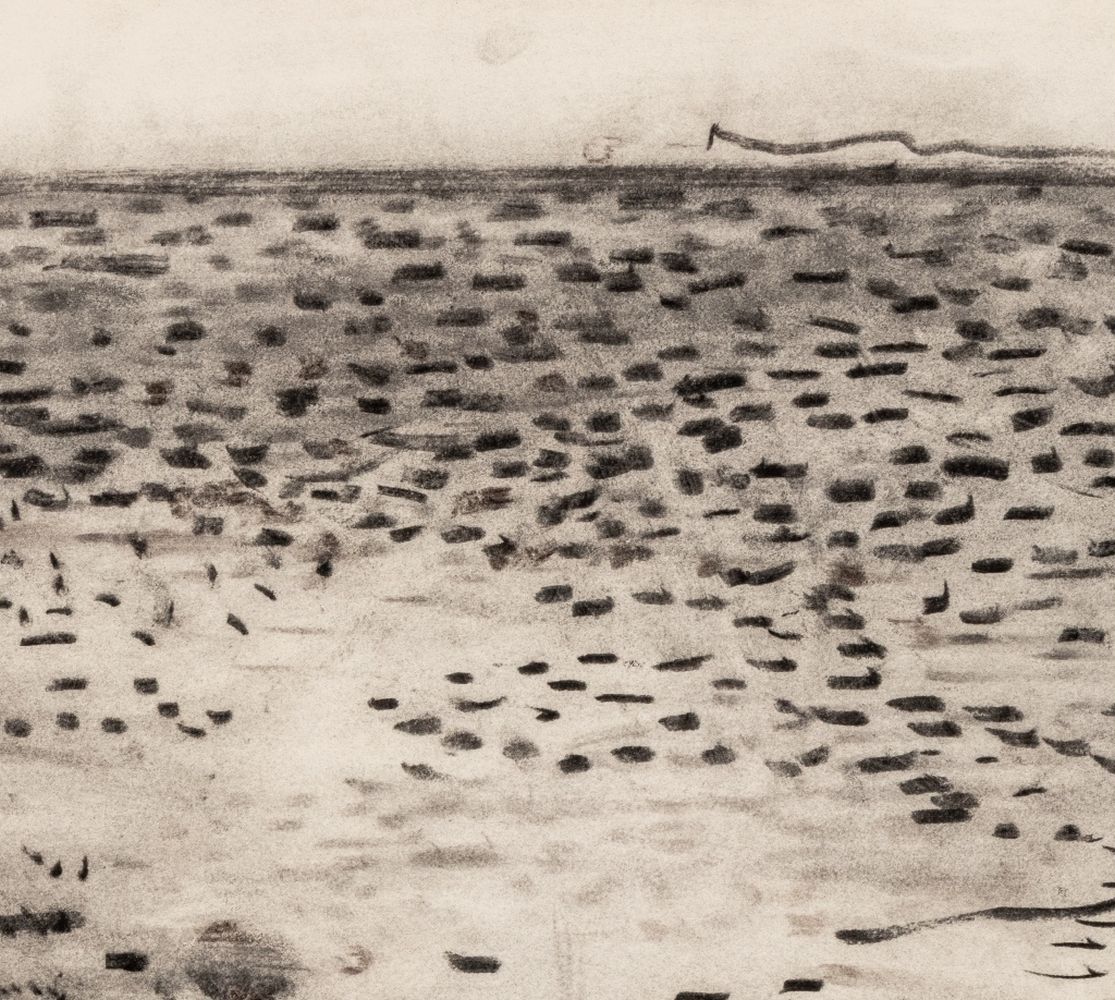Manfred Schwartz Beach Seascape Charcoal on Paper