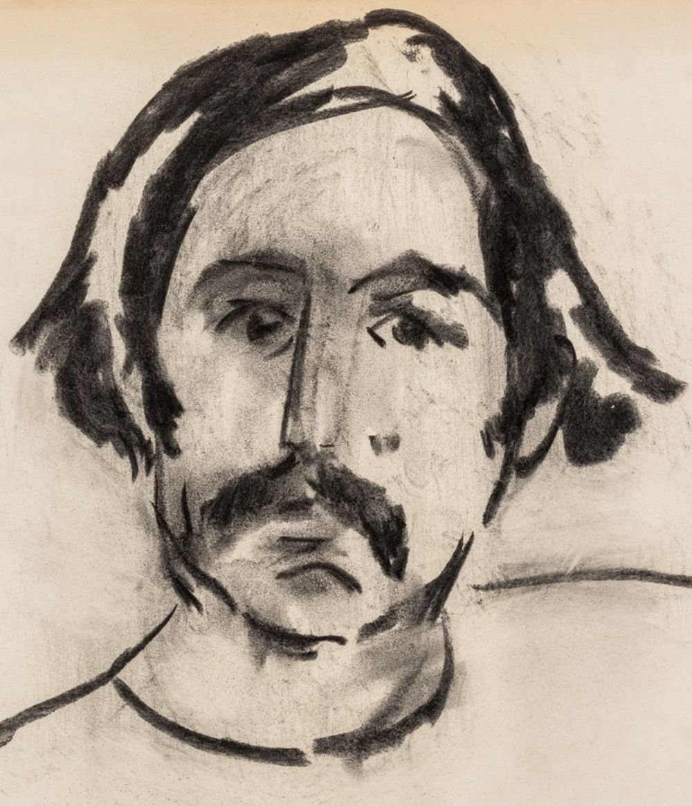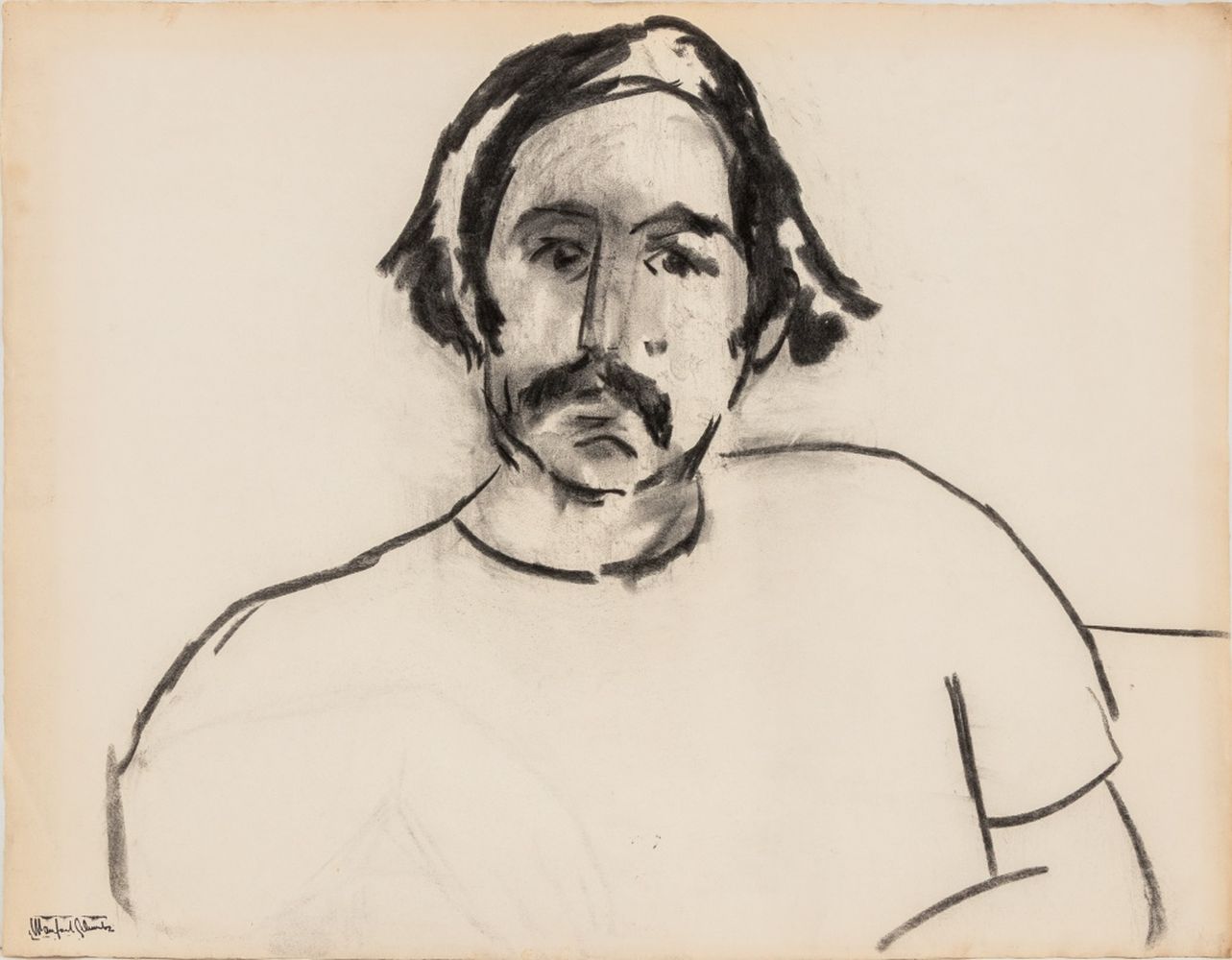 Manfred Schwartz Portrait of Man Charcoal on Paper