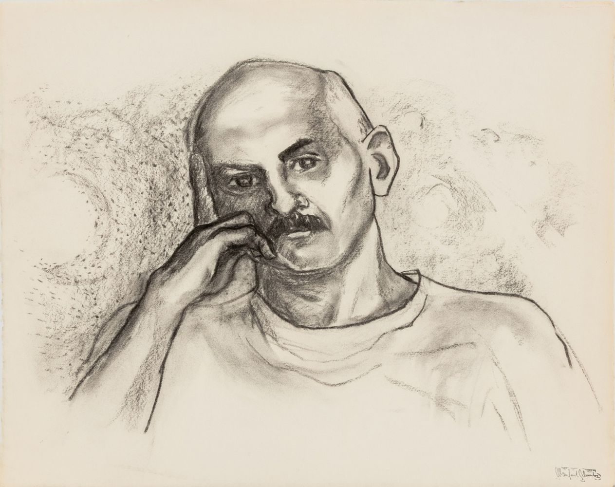 Manfred Schwartz Portrait of Man Charcoal on Paper