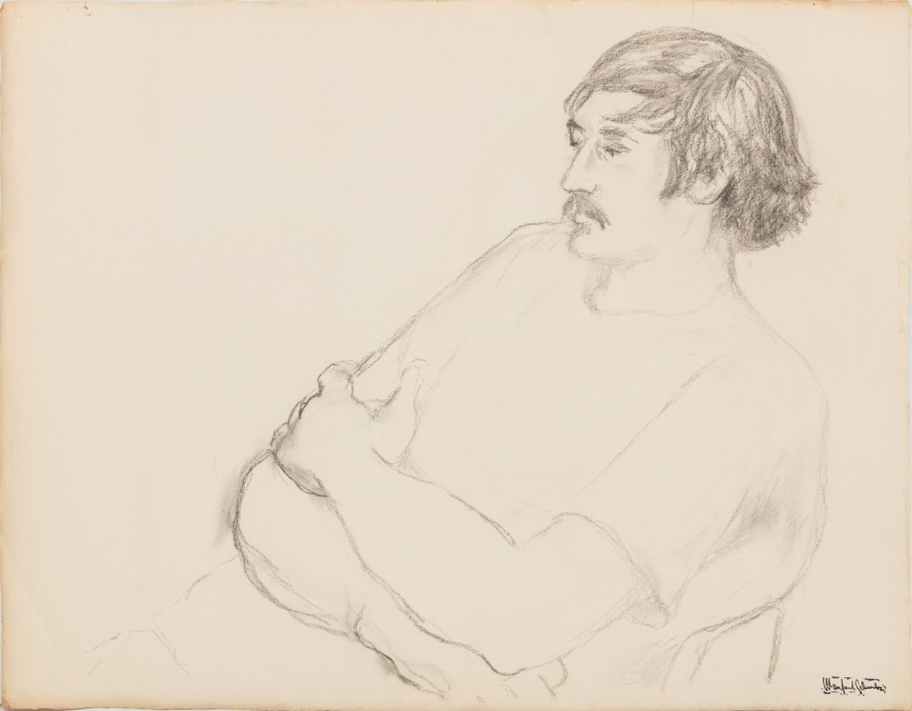 Manfred Schwartz Portrait of Man Charcoal on Paper