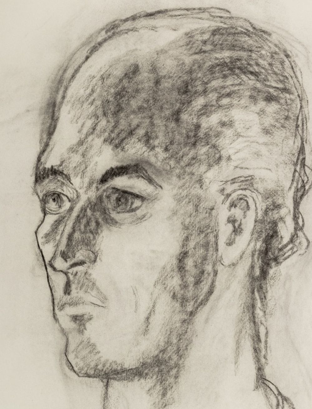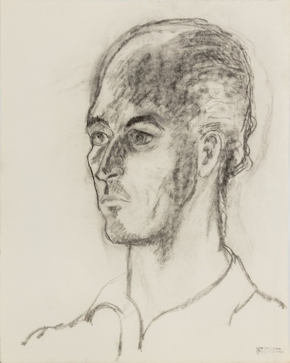Manfred Schwartz Portrait of Man Charcoal on Paper