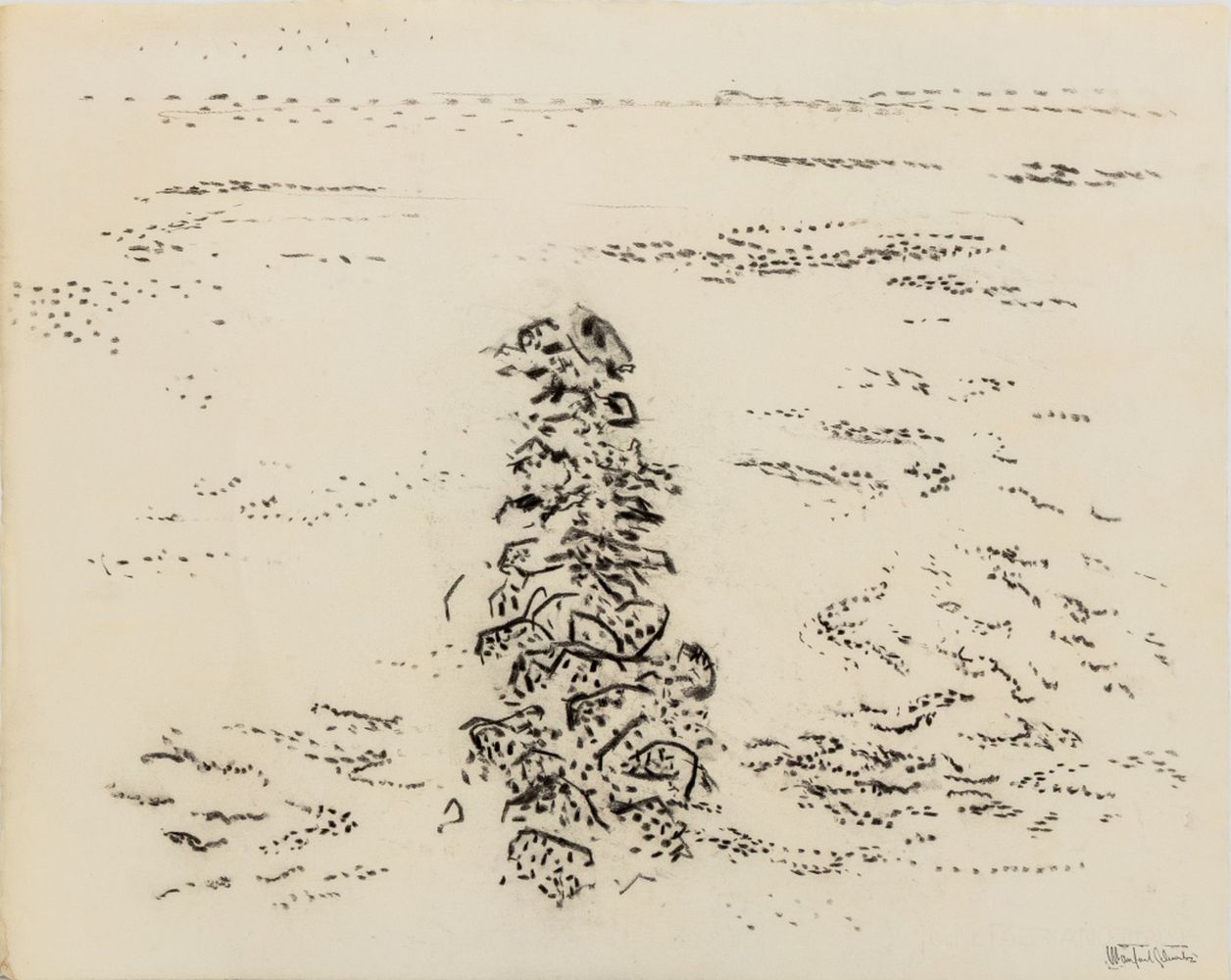 Manfred Schwartz (American, b. Poland, 1909-1970), Rockwall Seascape, Charcoal on Paper, with the artist's signature stamped lower right, unframed. 19" H x 24" W. Provenance: From a 35 East 75th Street Estate. Keywords: Drawing, Works on Paper, Study, Sketch, Beach, Seawall, Jetty, Atlantic Ocean, Provincetown, P-town Artist, Post-War Art