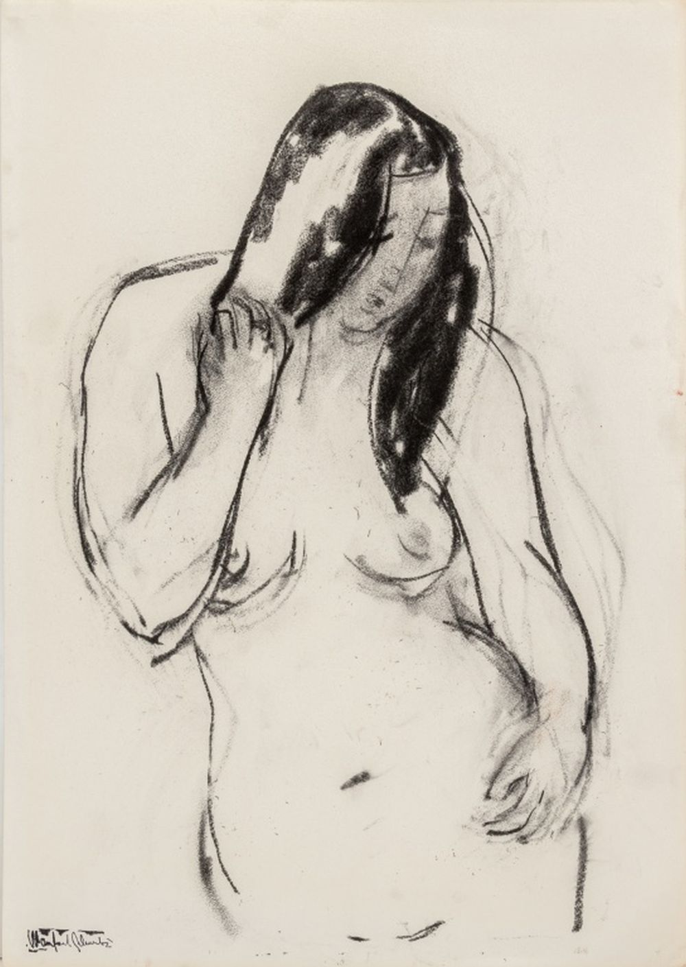 Manfred Schwartz Standing Nude Woman Charcoal