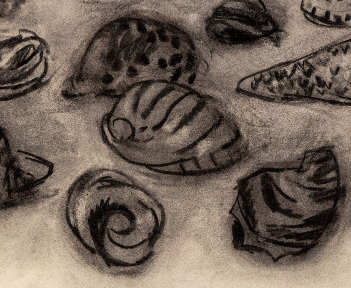 Manfred Schwartz (American, b. Poland, 1909-1970), Still Life of Seashells, Charcoal on Paper, with the artist's signature stamped lower right, unframed. 20" H x 25.5" W. Provenance: From a 35 East 75th Street Estate. Keywords: Drawing, Works on Paper, Study, Sketch, Conch, Shells, Marine Life, Ocean, Atlantic, Provincetown, P-town Artist, Post-War Art